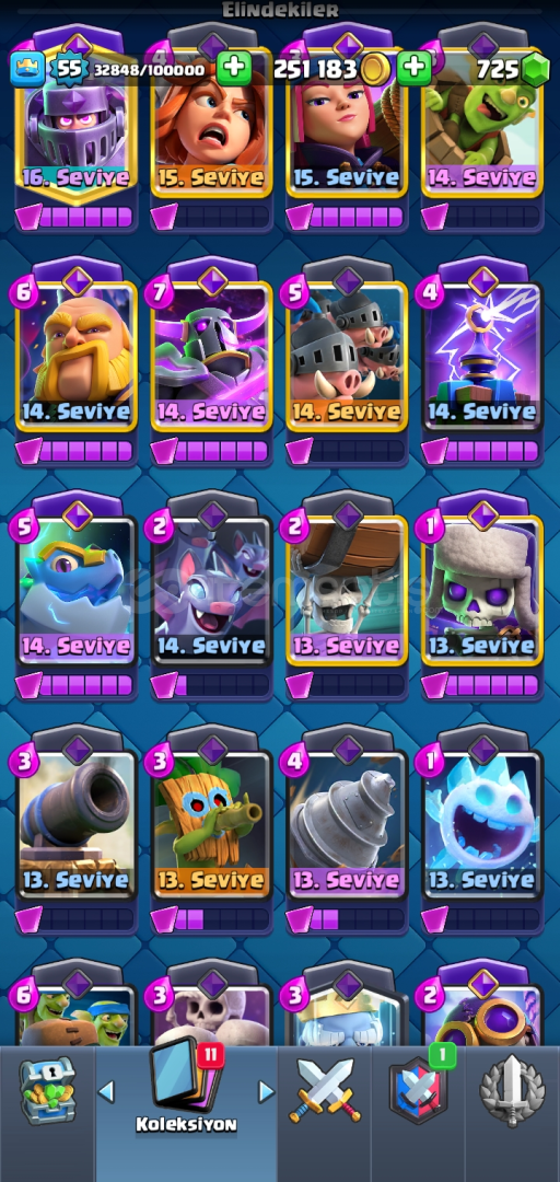 10600 kupa 16 level megası var evrimle birlikte cogu kart 14 üstü