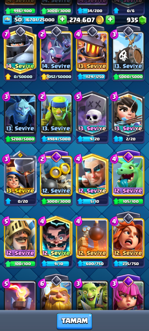 50 seviyeli hesap4 senelik123 rozet950 elmas38 bin joker karti2 evrim parcasi10 evrimli kart3 elit kartBüyülü para68 emoji9 adet kule görünümü64 dekorasyon54 cerceve2100 royale taktiklerpazarlik yoktur hesab yeni acilmis sadece cr bağli sifir hesab gün icinde ögleden sonra 12 ile 10 arasinda teslim edilebilir