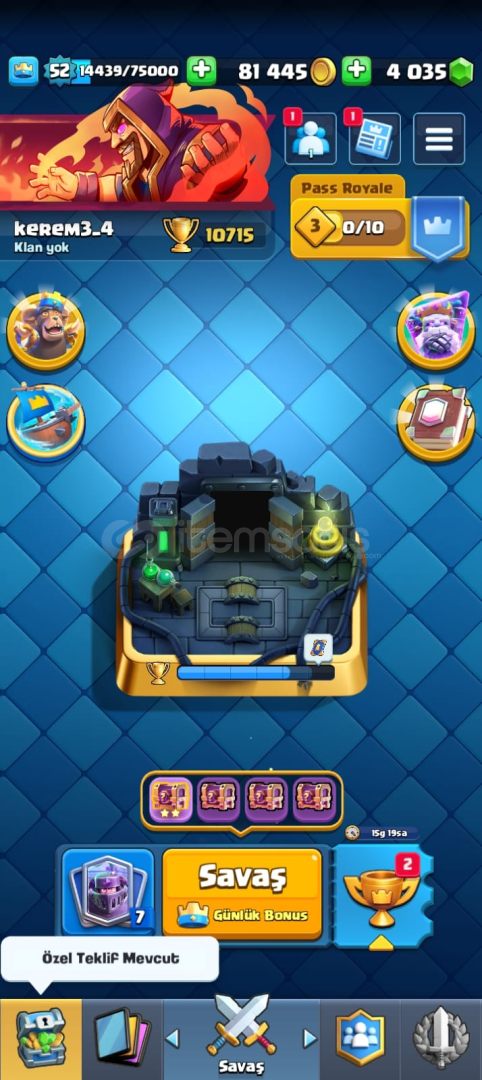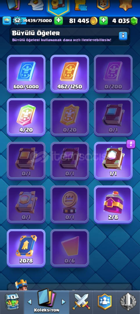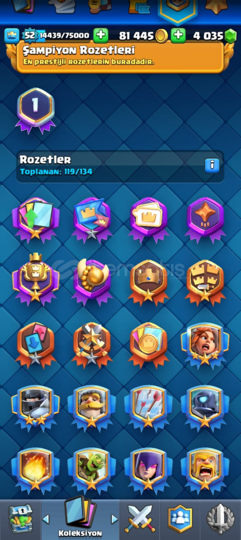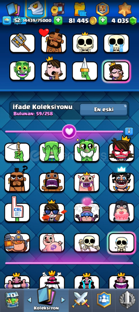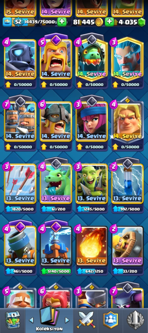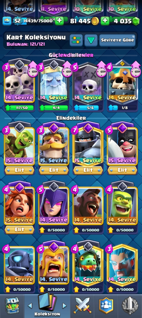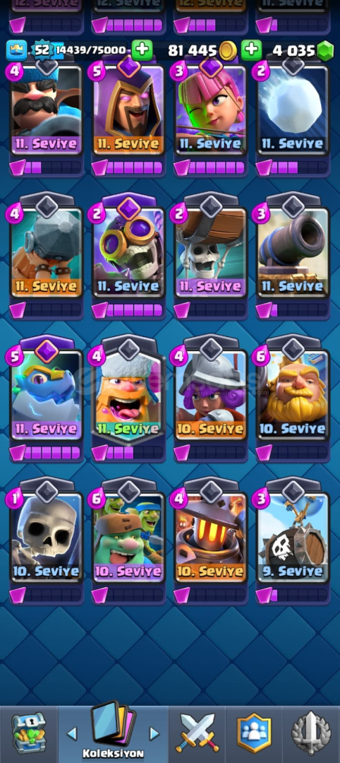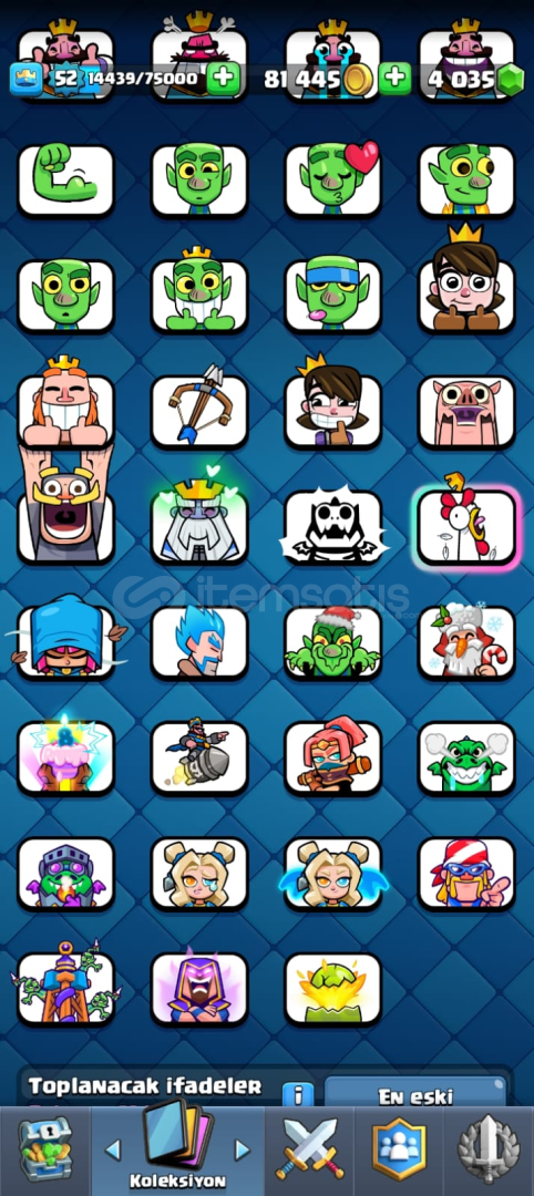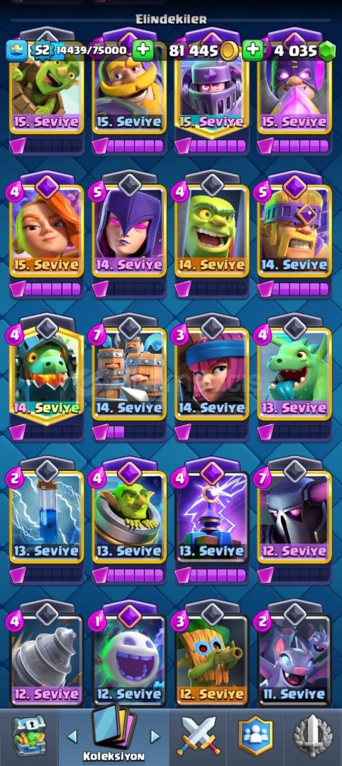 ⭐10715 Kupa⭐12 Evrimli kart⭐119 Rozet⭐121/121 Kart sayısı⭐59 İfade fazlasıyla kışkırtıcı ifadeler⭐54 Flama/64 Çerçeve/5 Kule⭐4035 Taş/100K Altın ⭐52 Seviye⭐Hesaba göre oldukça uygun