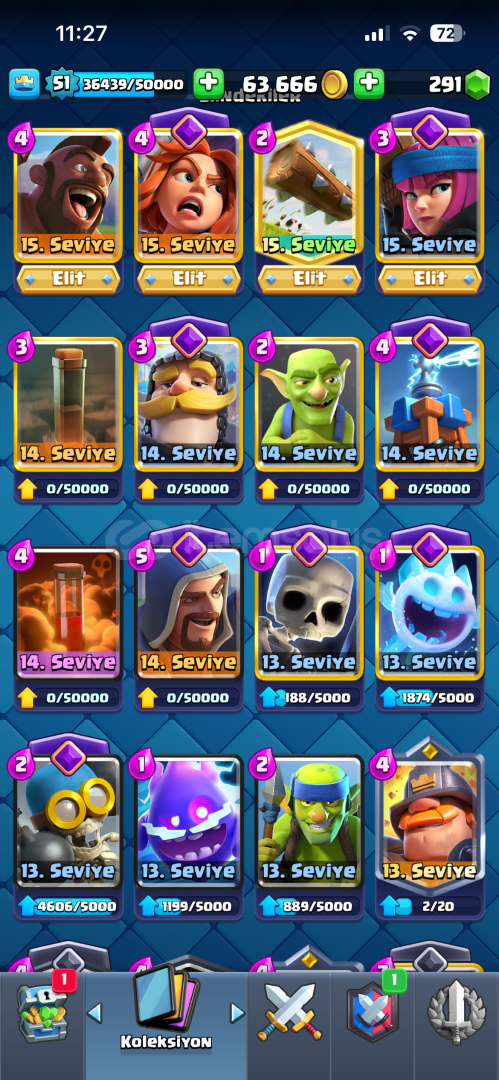 Sahibinden Mis gibi hesap pazarlık yaparım oyunu bıraktığım için satıyorumEVRİMLER:Kraliyet DeviValkürTeslaY. EjderBuz ruhuŞovalyeİskeletlerFişekçiBüyücü OkçularBombacı