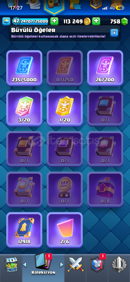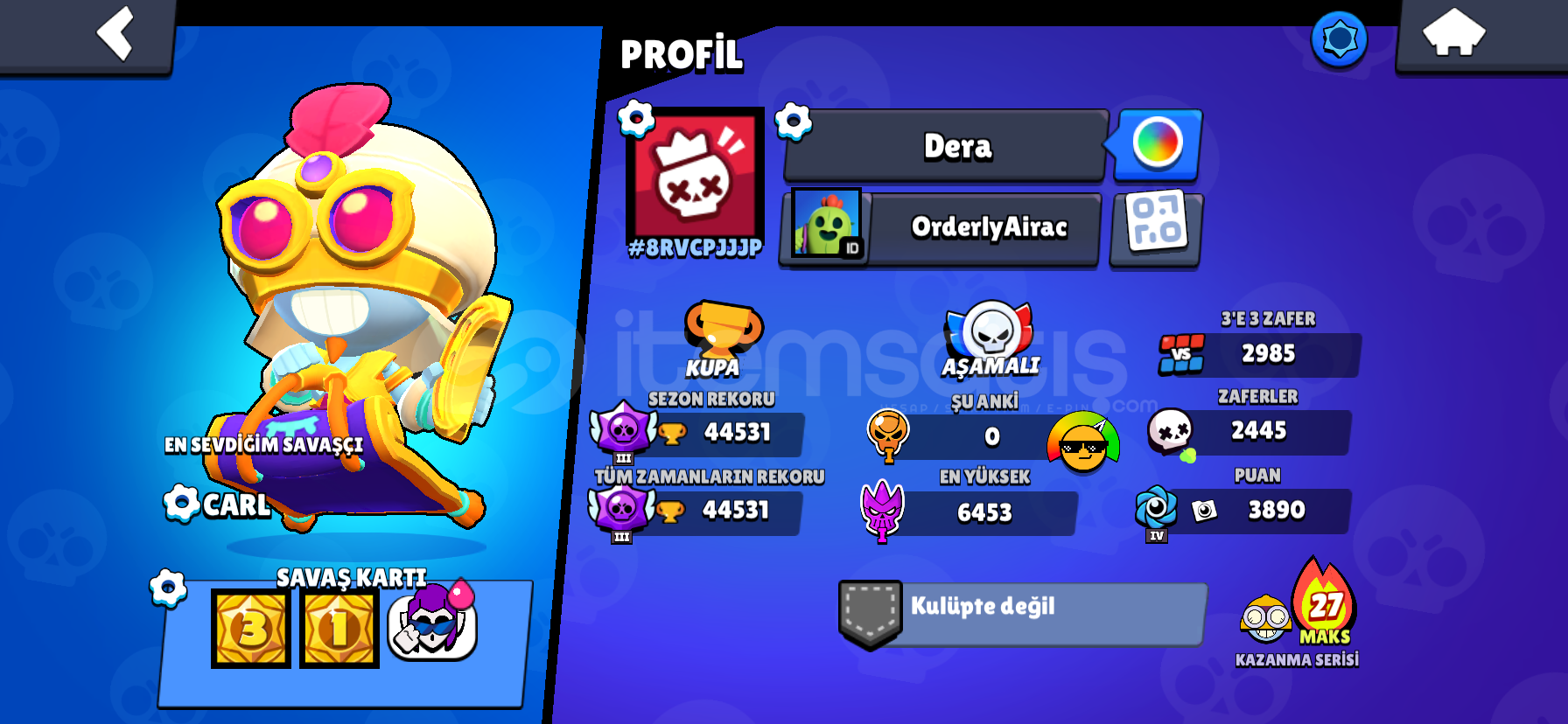 Hesap 10k dır.3 tane elit kart,11 evrim vardır.45 k bs hesabı vardır.coc 10 seviye belediye binası vardır.Hesap koruması aktif değildir.Temiz mail ile teslim edilecektir.