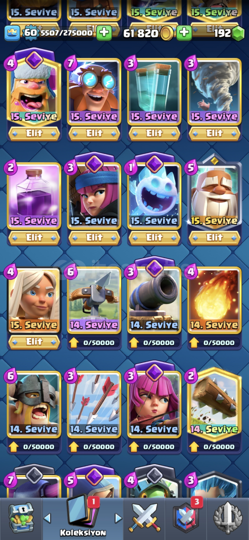 Mükemmel hesap iyi kasılmış 15+ elit 10+evrimler güzel kartlar maxlanmışMail devri yapılır almadan önce yazınız