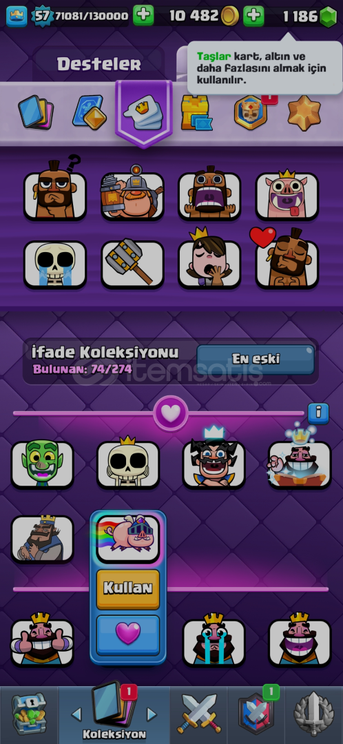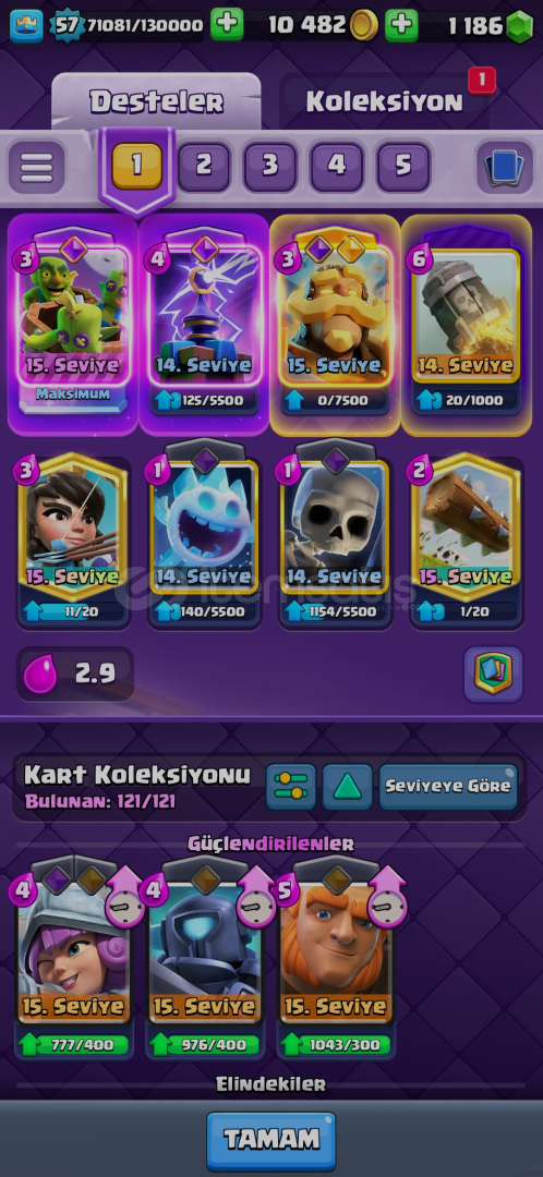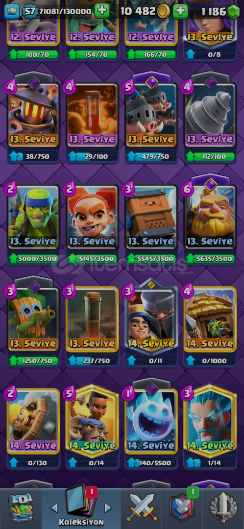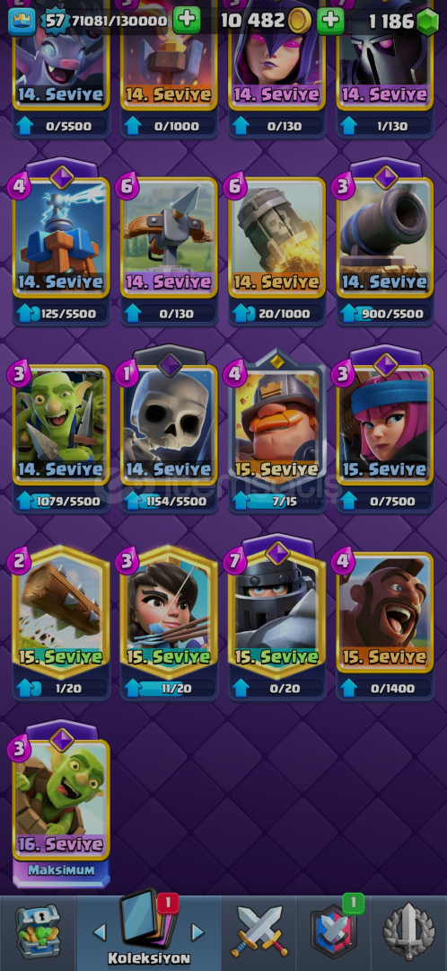 17 evrim var2 kez 15k kupa oldu16 lvl fıçı varKahraman şövalye varClasic log bait,binici deprem,ice bow gibi desteler basılmış 600tlye domuzcuklar passi aldım E-posta size devredilicekHesap koruması aktif değil