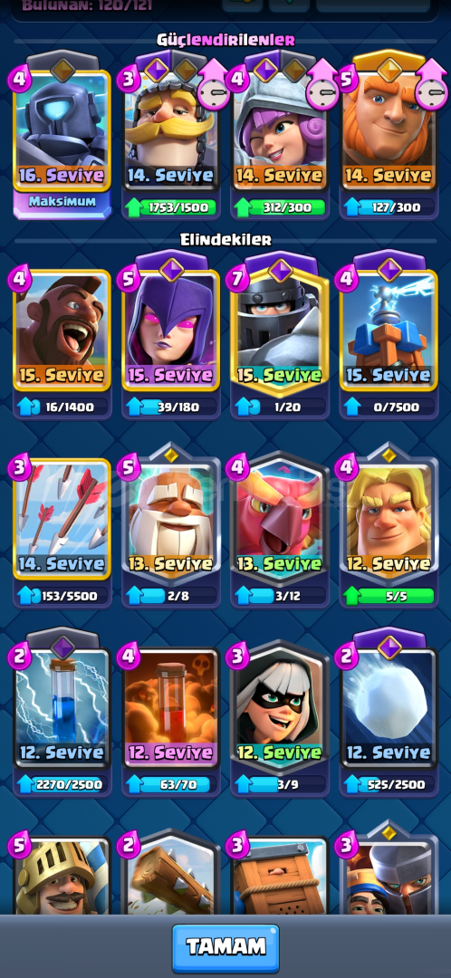 1 level atlarsanız kral kulesi 15 olur onun harici iyi evrimler var