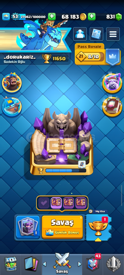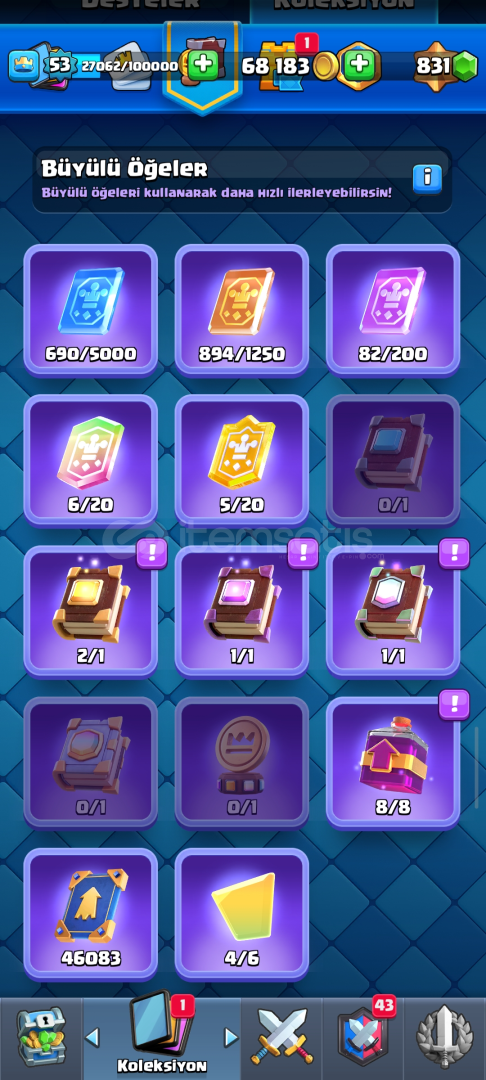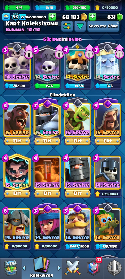 Hesabım doludur 7 tane elit kart var, 11 tane evrim var, kartlar kitapları vs. Var