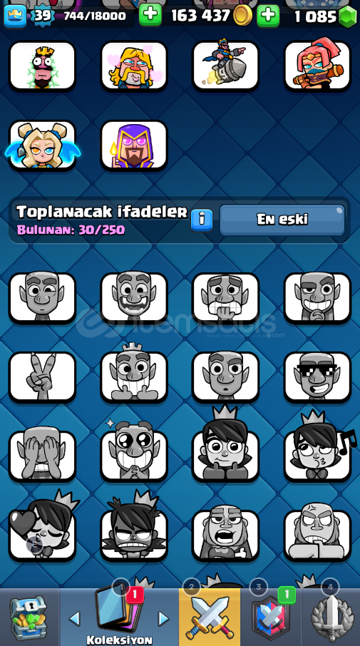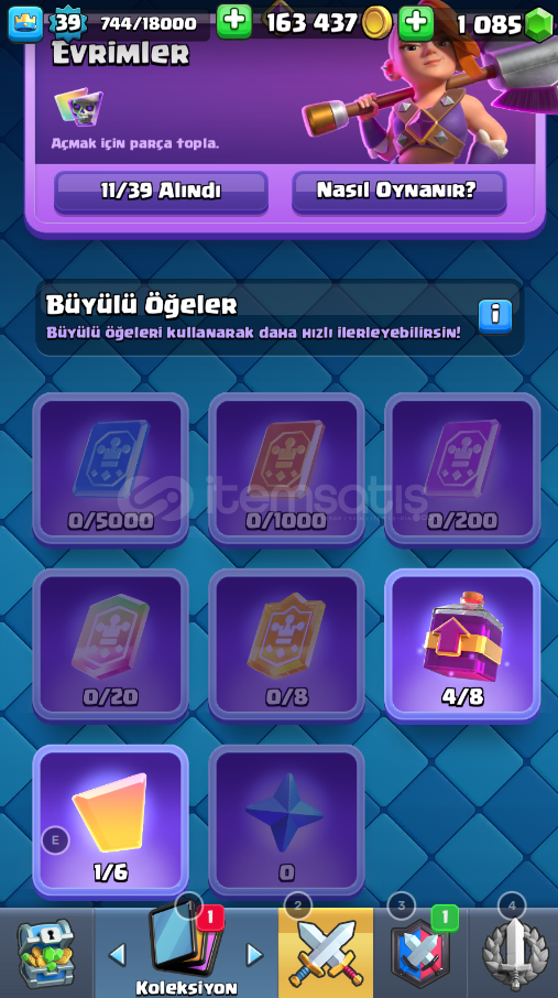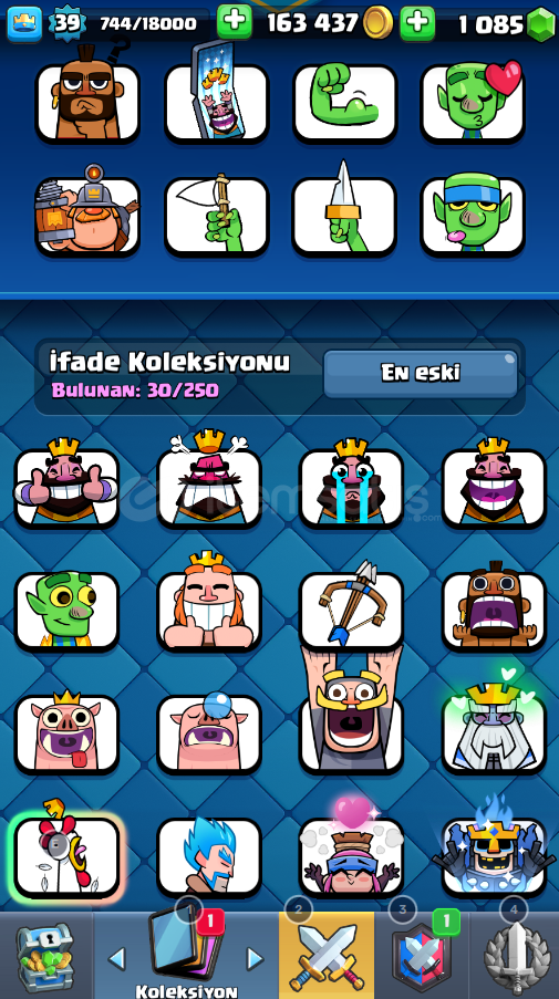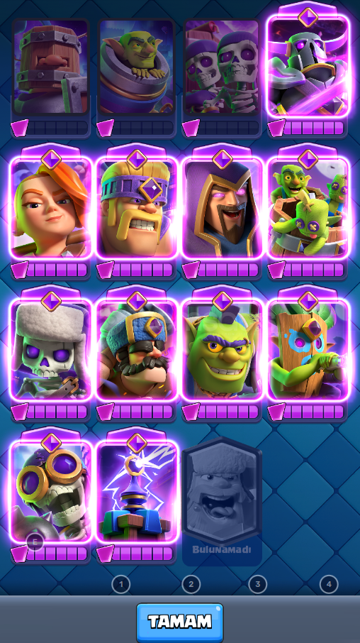 hesap 8k kupadadır. hesabın ücretsiz isim değistirme hakkı yoktur 500 elmas verip değistirilebilmektedir hesaptata 1000 elmas vardır.Hesap gmail:sifre olarak teslim edilicektir. hesap koruması aktif değildir3 Adet 14 Seviye Kart vardır10 Adet 13 Seviye Kart vardır9 Adet 12 Seviye Kart vardır30 Adet 11 Seviye Kart vardır1x evrim joker parçası vardır5 adet kule görünümü vardır, 30 emoji vard&...