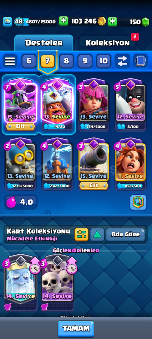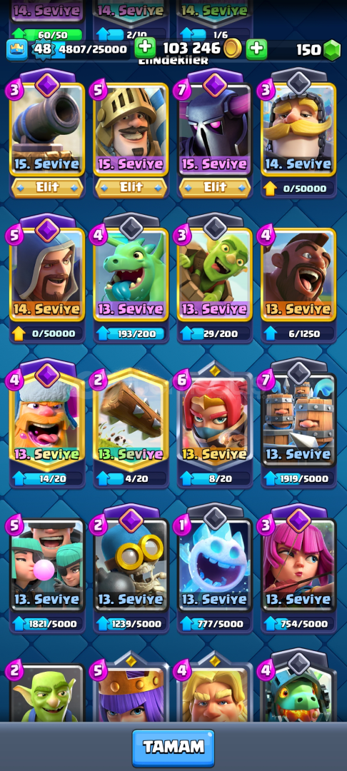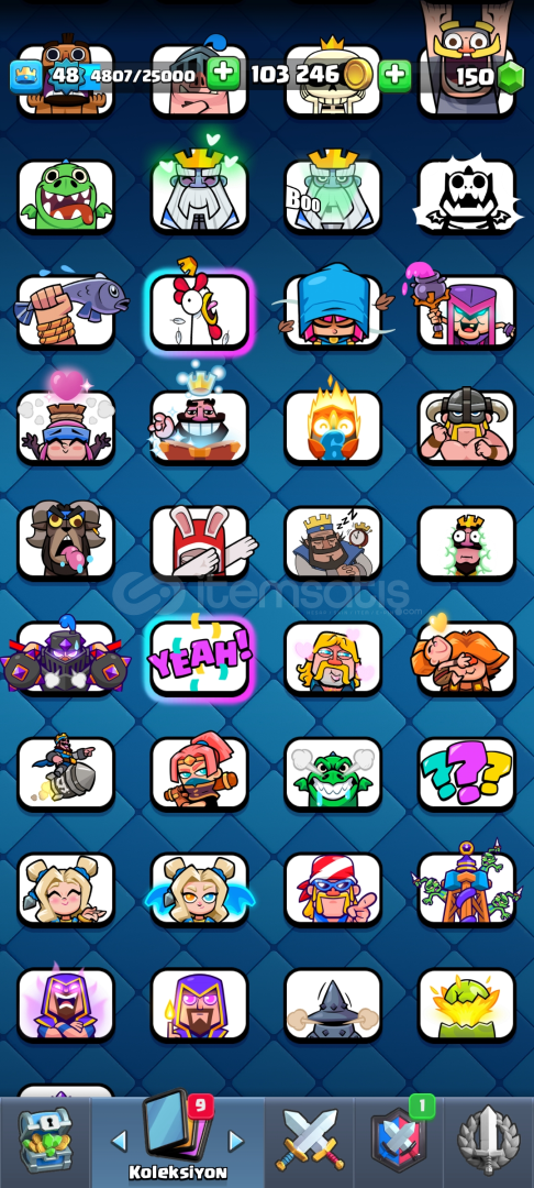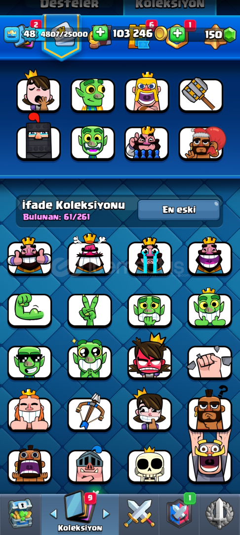 Hesap 11.k kupaddir hesapta bircok güzel emoji ve sadece 3 kart eksiktir 48 seviye ve 61 emoji vardır hesapta 11 evrim ve 3 karttada 3 Evrim parçası eksiktir 3 karakte Max 3 u 14 seviye ve birçok 13 seviye kart mevzuttur hesap 4 yıllık emek hesaptır isteyene gmail ile direk teslim yada kendi gmailinize bağlanilabilir hesap DM den aklınıza takılan soruları sorabilirsiniz