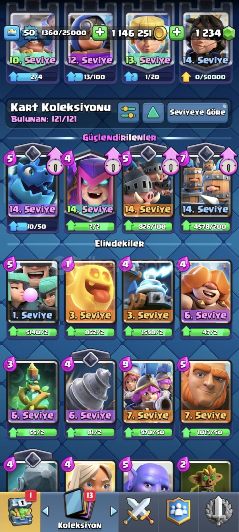 ⚡11000 KUPA⚡50 LEVEL⚡11 EVRİM⚡VİP⚡