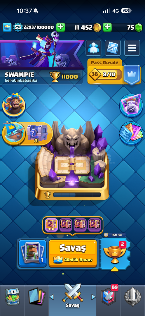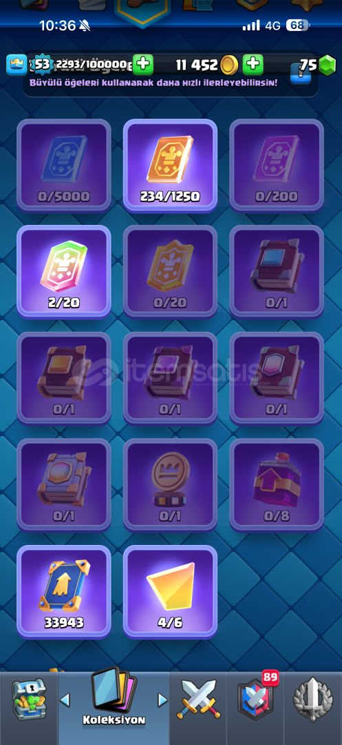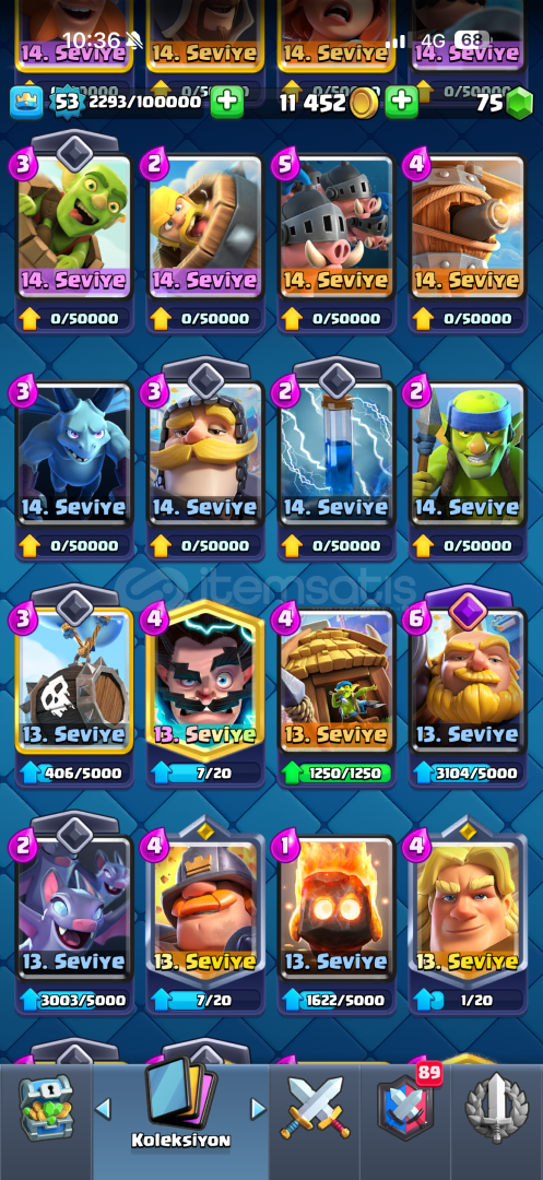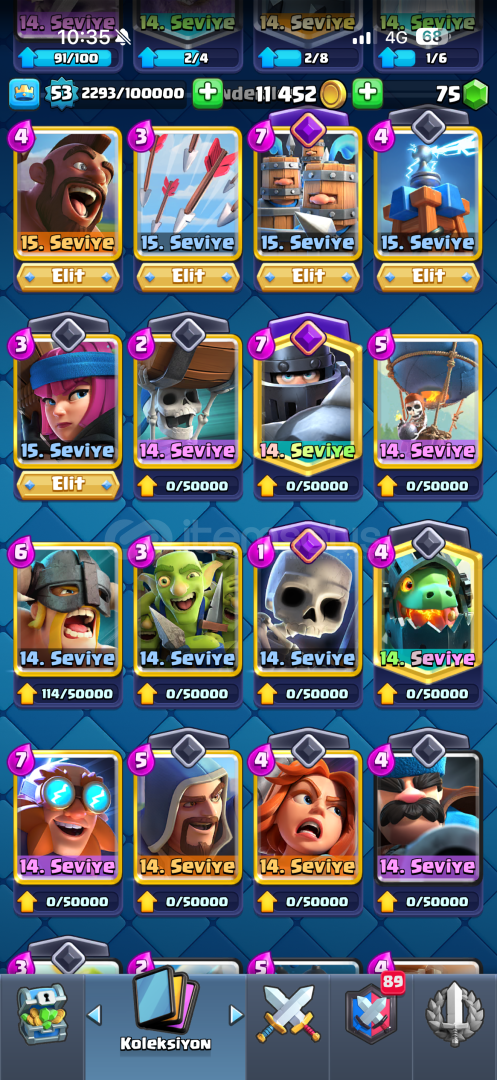 ÖNCELİKLE HERKESE İYİ ŞATIŞLARKUPA - 11000 🏆SEVİYE - 53EMOJİ SAYISI - 71EVRİM SAYISI - 715 SEVİYE KART SAYISI -514 SEVİYE KART SAYISI - 20EVRİM PARÇASI - 4Gerisi fotoraflarda görüdünüz gibidir ….pazarlık yapılır usulunce hesap mail alıcının maile devredilecektir