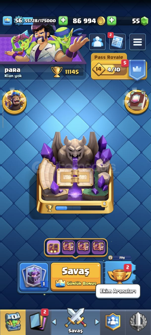 Otomatik teslimattır aktif olmasamda alabilirsiniz!Eposta:şifre formatında ve hesabı nasıl üzerinize alacağınızın hakkında bütün bilgiler satın alınca otomatik iletilecek!Hesaba detaylıca bakmak için:https://royaleapi.com/player/GLCRQC8CYHesaplar asla geri çekilmez!Hesap koruması aktif değildir!Yeni güncelleme sebebiyle sezon geçişlerinde CLASH ROYALE HESAPLARINDA kupa kayb...