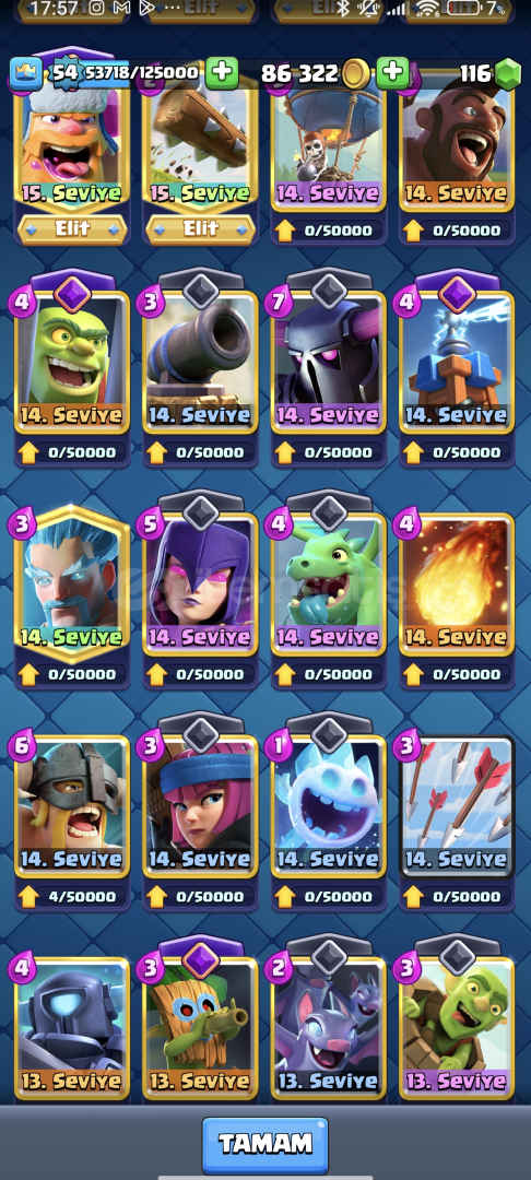 hesapta 7 tane elit15 tane max kart varfiyatını ideal tuttuğumu düşünüyorumemojiler fazlasıyla işinizi görür11000 kupamerak ettiğiniz sorular için dm15 tane evrim