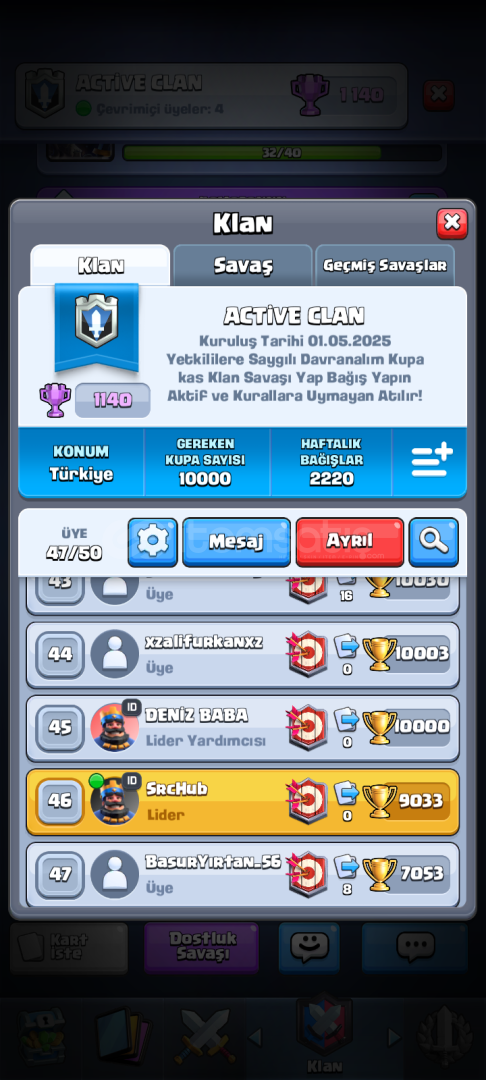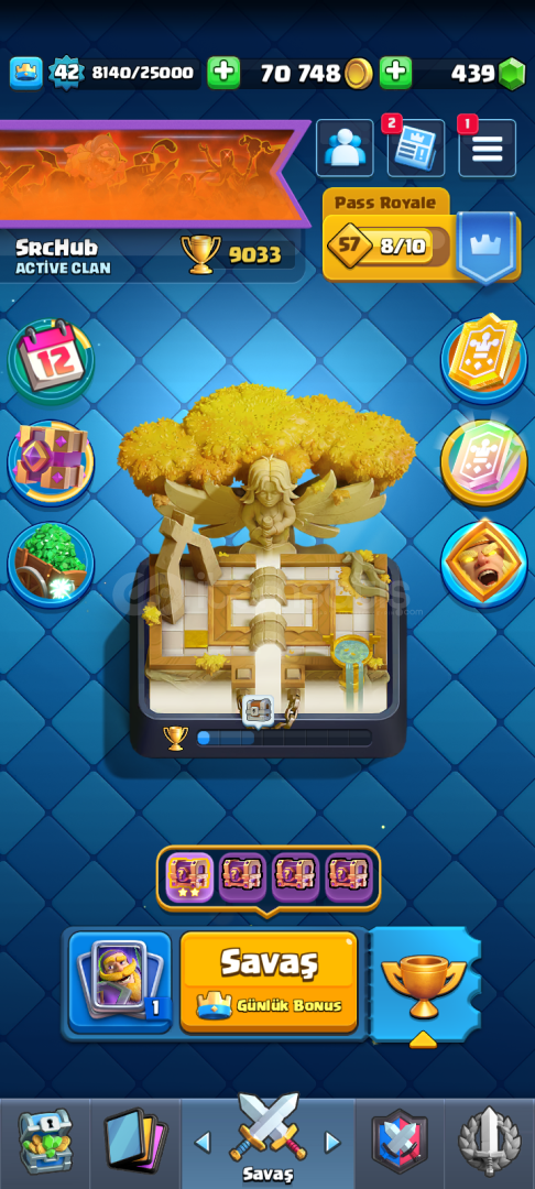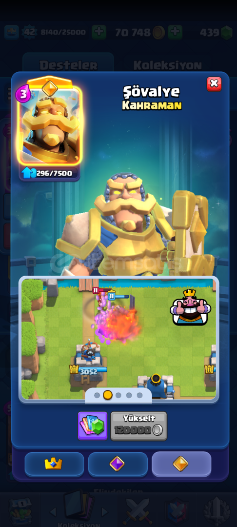 42 seviye9000 kupa1140 kupalı klanın sahibi7 evrimşövalye kahramanı açılmış