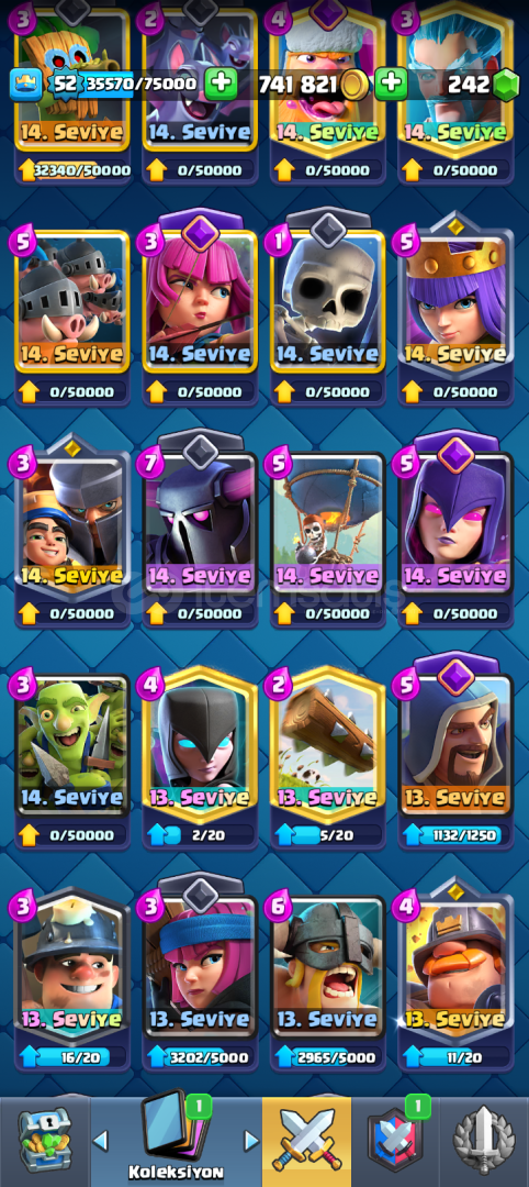 11.500 kupa 52 seviye tüm kartlar mevcut