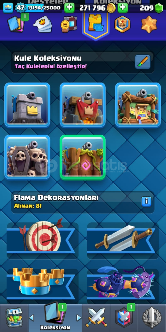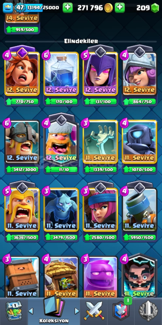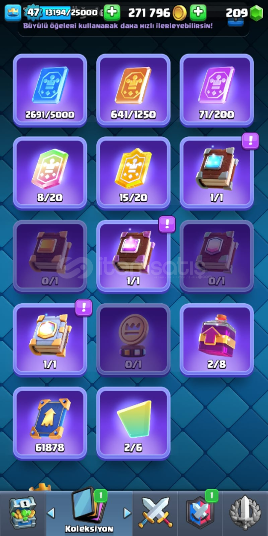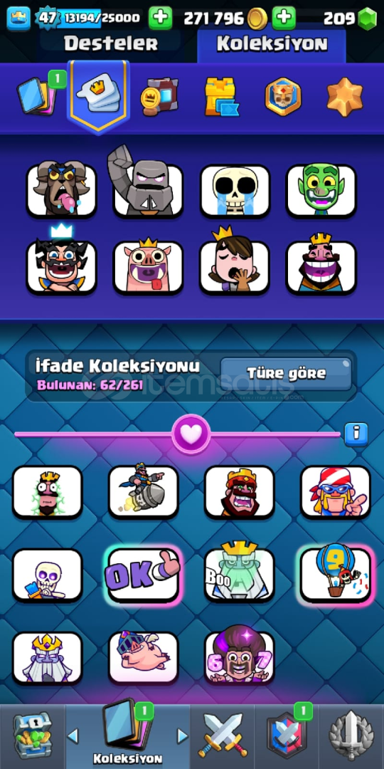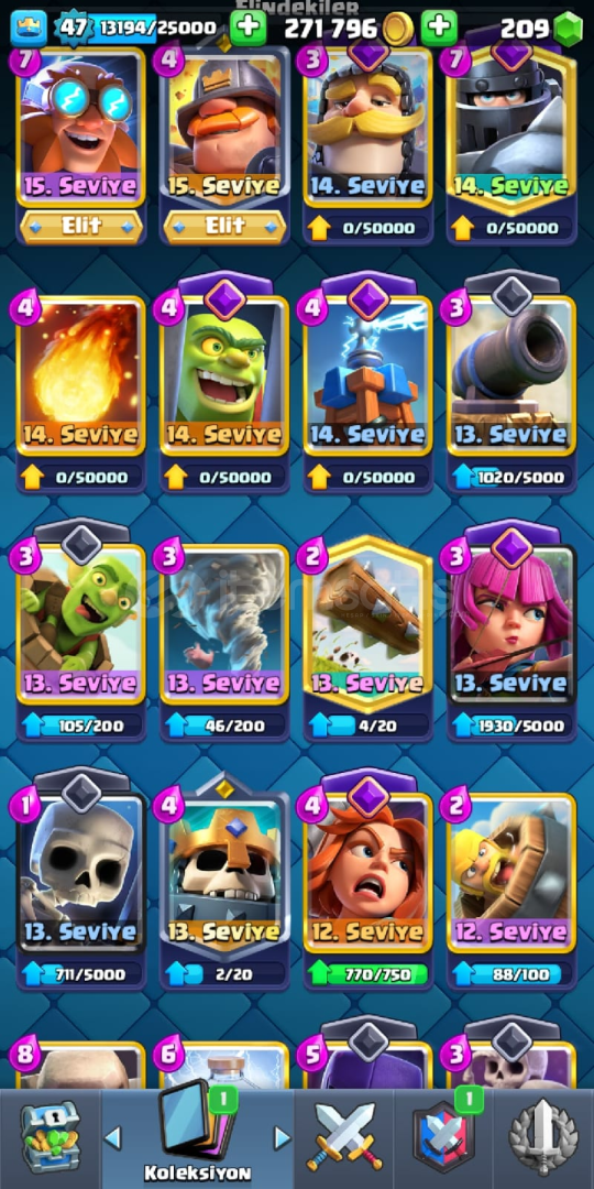 Oyunu bırakıyorum ve paraya ihtiyacım var Aktif olarak 224 seri var ve 62 emoji var Flama Çerçevesi 79 adet flama dekarasyonları 81 adet vardır 4 kule skini var ve Bir sürü yükseltilebilir kartlar var 61k Elit kart var vb Fotoğraflardan zaten hesabı görüceksiniz.