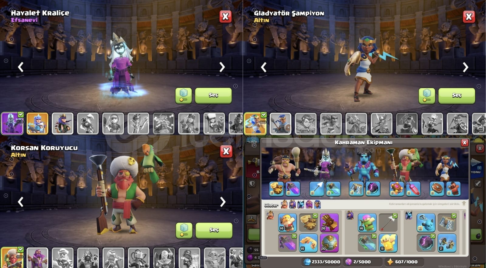 • Barbar kral 85, Okçu kraliçe 94, minyon prens 63, büyük koruyucu 57, kraliyet şampiyonu 31 seviyesindelerdir.