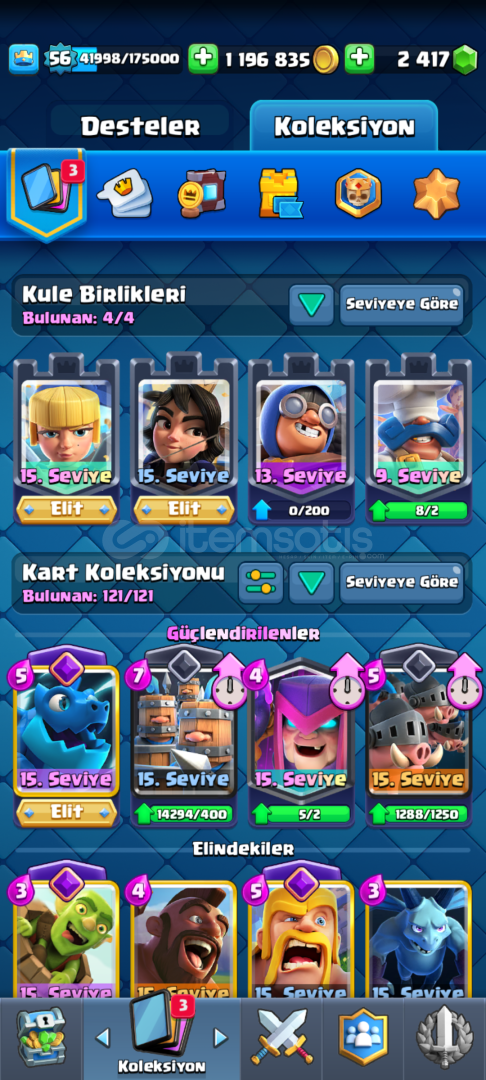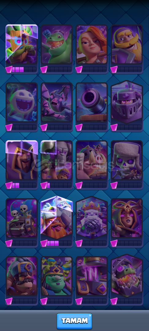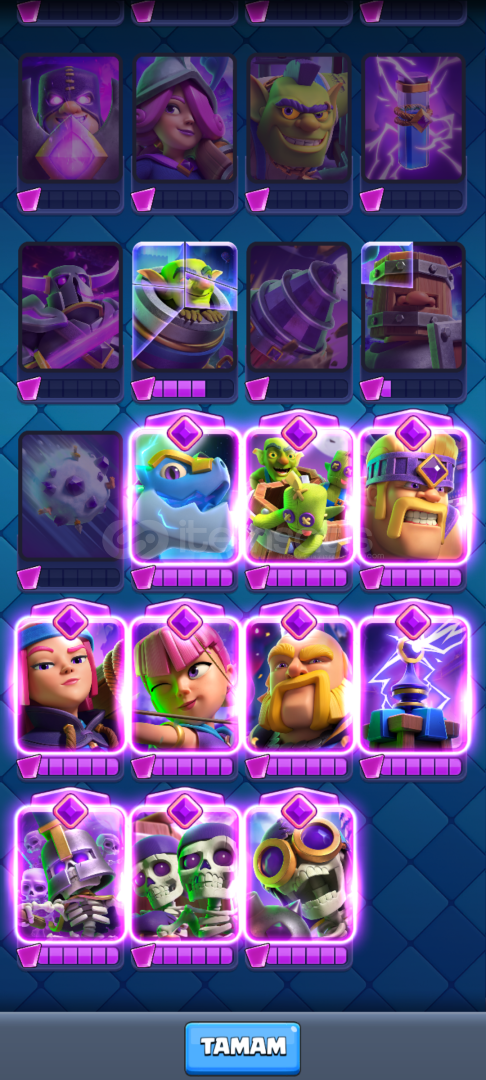 11k kupa 12 elit karakter (14 tane yapılabilir) 14 14seviye karakter (daha fazla yapılabilir hesaplanmadı) 2 elit kule birliği (4 kule birliği var) 75 emoji Yeteri kadar dolu büyülü öğeler 10 ad. evrimli kart (11 ad. yapılabilir) mail ile teslim Ürün resimde göründüğünün aynısıdır