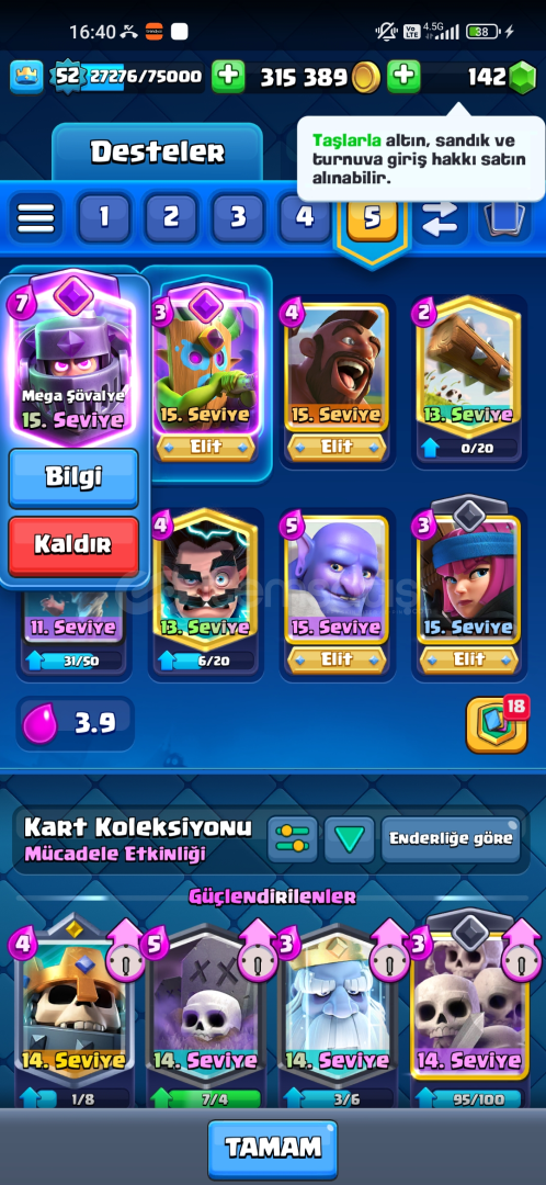 11k KUPA 9 EVRİM 5 TANE POPÜLER 15 SEVİYE KART