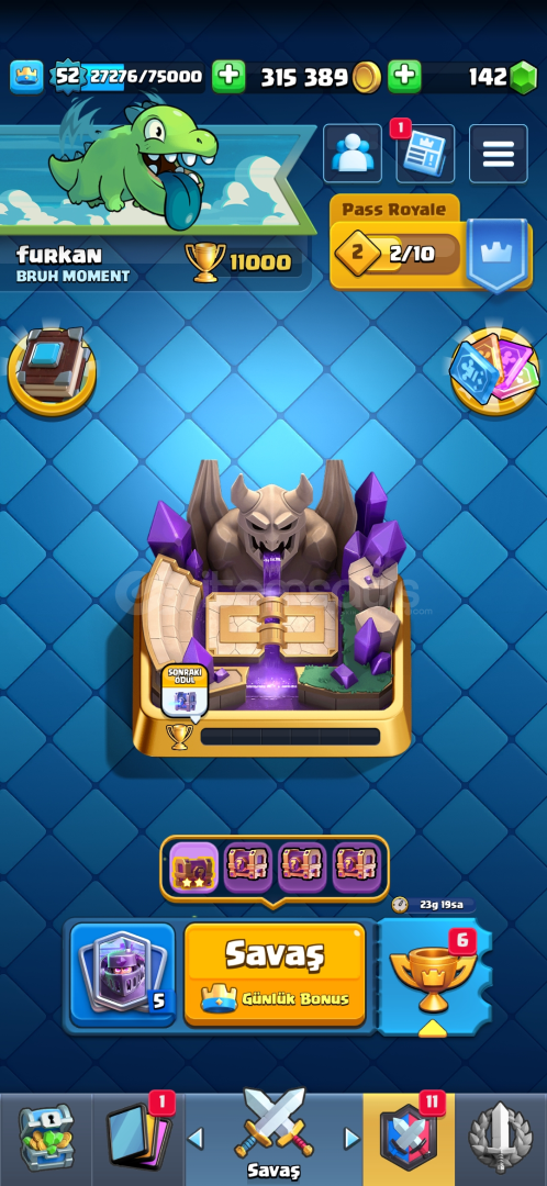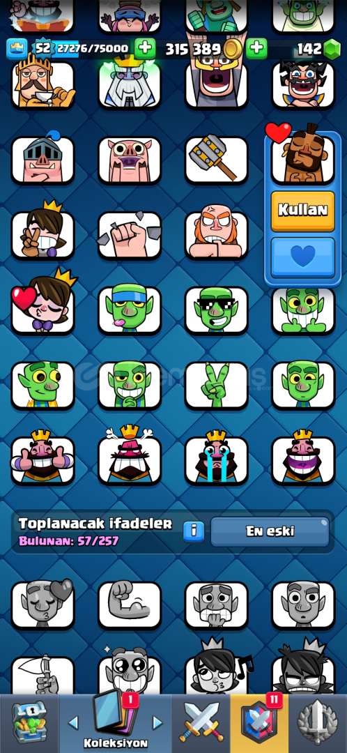 🕹️ Oyun: Clash Royale🏆 Kupa: 11.000⭐ Seviye: 52📦 Kartlar: