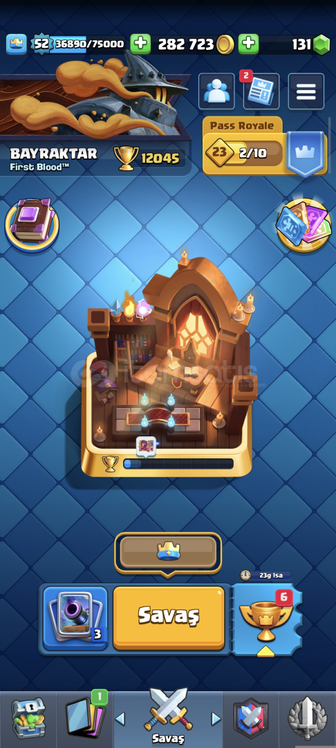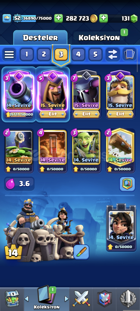 Hesabımız 12045 Kupadır16 Adet Evrim VardırCadı Evriminin açılmasına son 1 parçaYani 17 olmak üzere76 Adet Emojisi6 Adet Kule Görünümü8 Yıllık Bir HesaptırPazarlık Ufakta Olsa Vardır