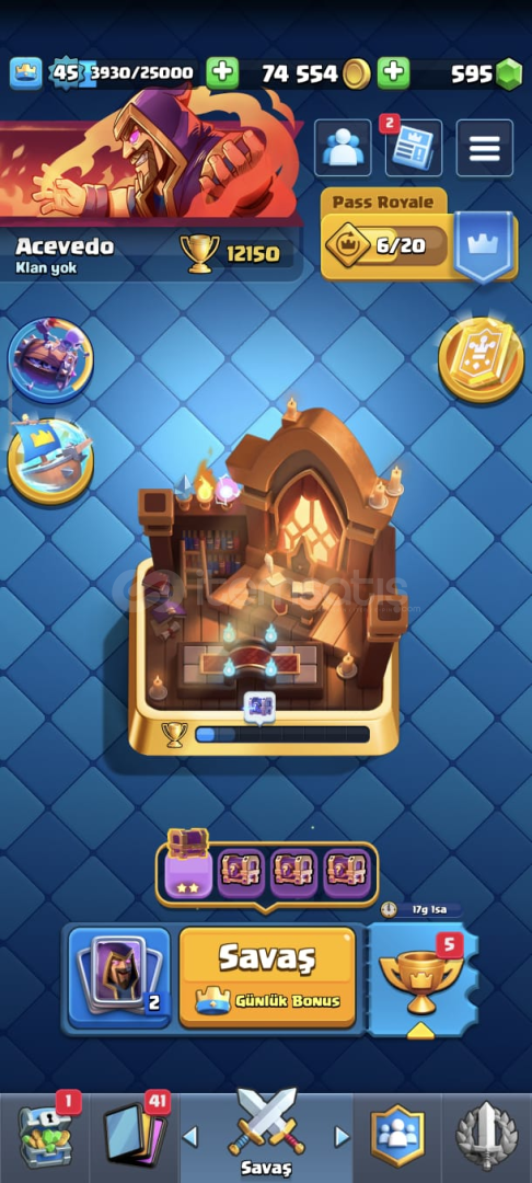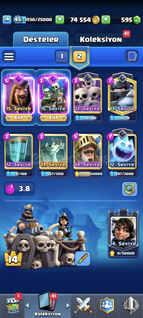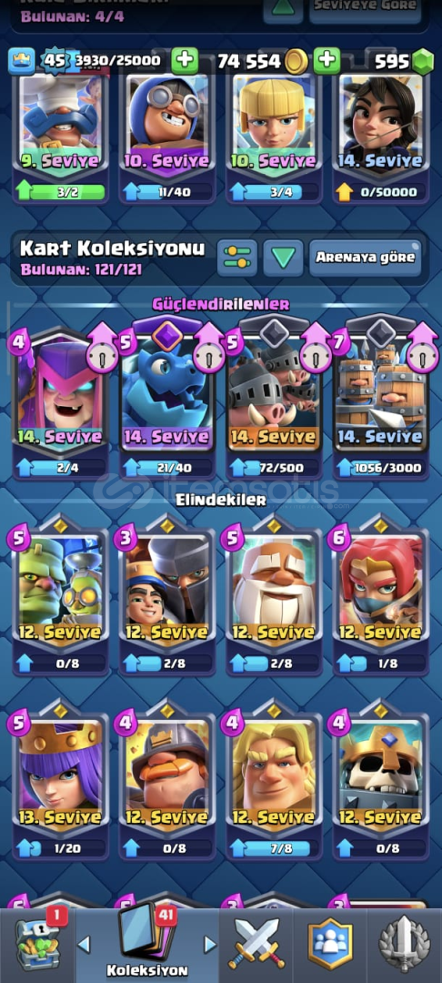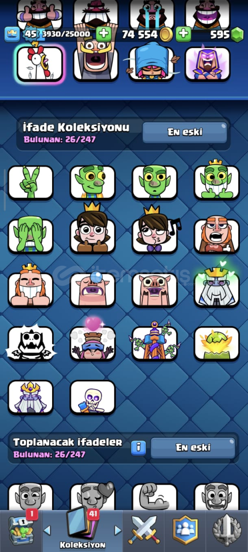 Hesaba detaylıca bakmak için: https://royaleapi.com/player/202U0CLVVCHesaplar asla geri çekilmez!Hesap koruması aktif değildir!Yeni güncelleme sebebiyle sezon geçişlerinde CLASH ROYALE HESAPLARINDA kupa kaybı yaşanabiliyor bilginize.Sipariş Sonrasında oluşacak sonular için kalıcı destek!"Neden beni tercih etmelisiniz?"+660 Başarılı işlem.Yüksek müşteri memnuniyeti.Supercell...