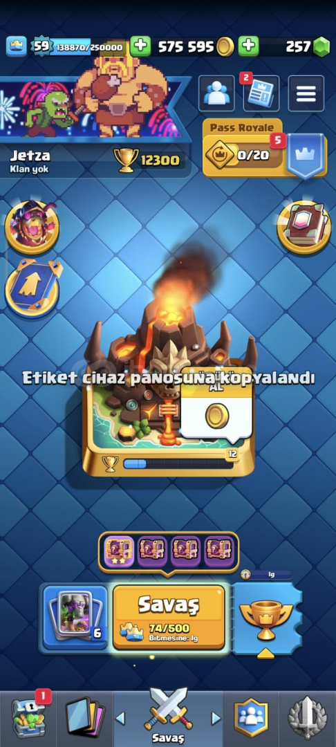 Otomatik teslimattır aktif olmasamda alabilirsiniz!Eposta:şifre formatında ve hesabı nasıl üzerinize alacağınızın hakkında bütün bilgiler satın alınca otomatik iletilecek!Hesaba detaylıca bakmak için:https://royaleapi.com/player/PYV9PV2LJHesaplar asla geri çekilmez!Hesap koruması aktif değildir!Yeni güncelleme sebebiyle sezon geçişlerinde CLASH ROYALE HESAPLARINDA kupa kayb...