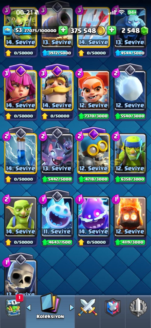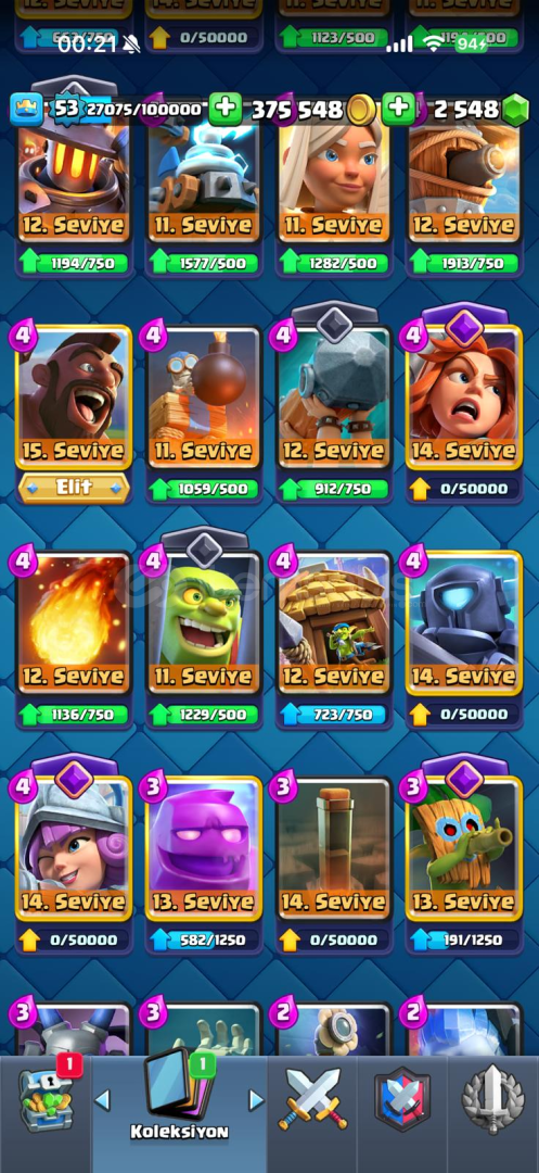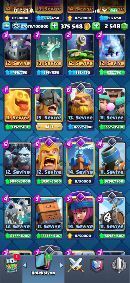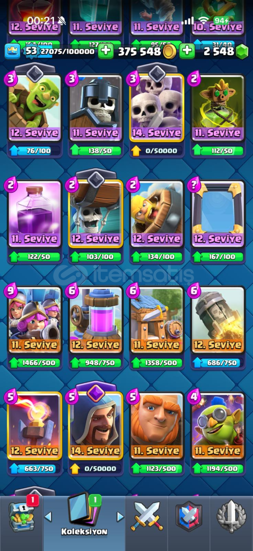 2500 yeşil taş 375k altın bulunuyorBütün kartlar açıkHesap yaklaşık 8-9 yıllıktırKendi kurduğum bir hesaptır al-sat yapmıyorum bu nedenle bağlı olan mail adresi teslim edilmeyecektir. Hesap sizin mail adresinize bağlanacaktır.Hesapta 27 tane max kart bulunmaktaAlıcıya hesap teslim edilirken ve hesaba giriş yaparken video kaydı alması zorunludur.