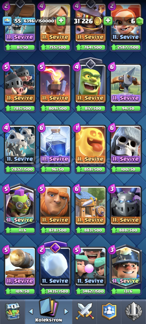 12k kupa bütün kartlar açık 11 evrim 55 seviye