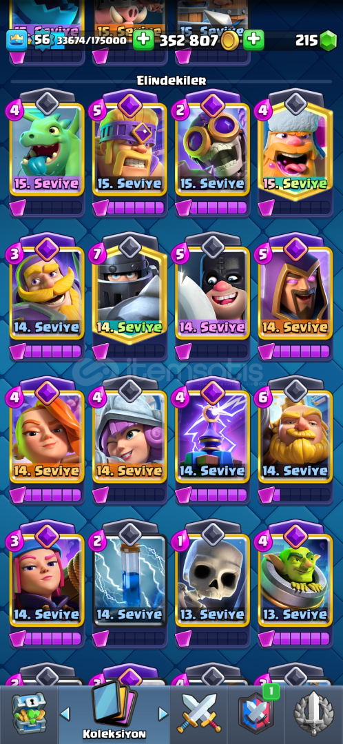 Hesabımda 13 açık evrim vardır Barbarlar, Bombacı, Sovalye, Buyucu Valkur Tesla, Fisekci, Havan , Buz Ruhu Koçbaşı , Dev goblin Goblin kulubesi açıktır 10 kart elit seviyedir istediğiniz şekilde mail e aktarılır detaylı bilgi için mesaj atınız.