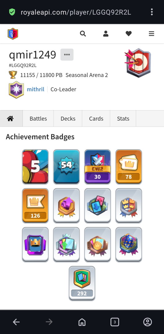 Uygun fiyatlı mainlemelik hesaptır hesabı kontrol etmek isterseniz #LGGQ92R2L kodunu royaleapi sitesinden görüntüleyebilirsiniz