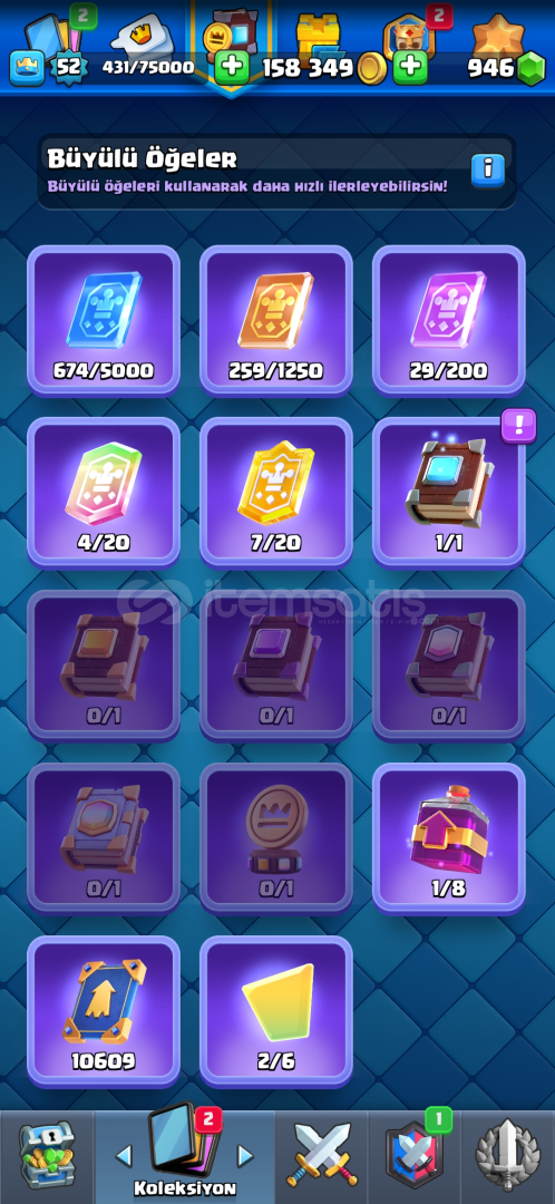 13600 KUPA 3.USTA LİG52 SEVİYE!58 ÖZEL EMOJİ5 ADET ELİT KARTEFSANE KULE GÖRÜNÜMLERİ8 ADET EVRİMOTOMATİK TESLİMATTIR İLANI ALDIGINIZ AN GMAİL VE ŞİFRESİ SİZE OTOMATİK AKTARILICAKTIR AKTİF OLMAMI BEKLEMENİZE GEREK YOK