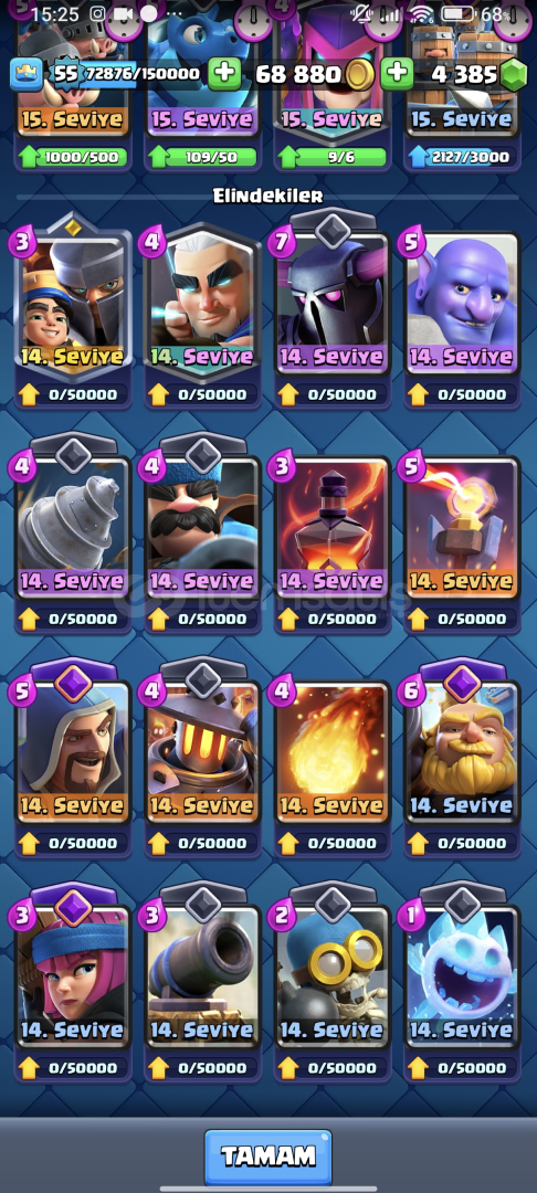 Hesapta 8 elit kart var 9 evrimücretsiz isim değiştirme 4300 taş fiyatını uygun tuttum alıcısına hayırlı olsun şimdiden