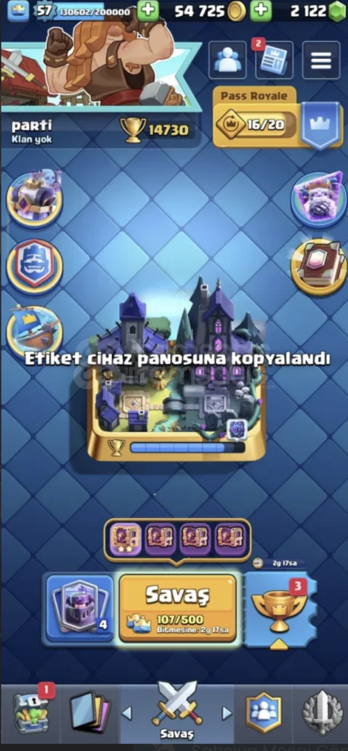 Hesaba detaylıca bakmak için:https://royaleapi.com/player/CJ220CLJPHesaplar asla geri çekilmez!Hesap koruması aktif değildir!Yeni güncelleme sebebiyle sezon geçişlerinde CLASH ROYALE HESAPLARINDA kupa kaybı yaşanabiliyor bilginize.Sipariş Sonrasında oluşacak sonular için kalıcı destek!'Neden beni tercih etmelisiniz?'Yüksek müşteri memnuniyeti.Supercell oyunu içinde 500+ Fazla başar&...