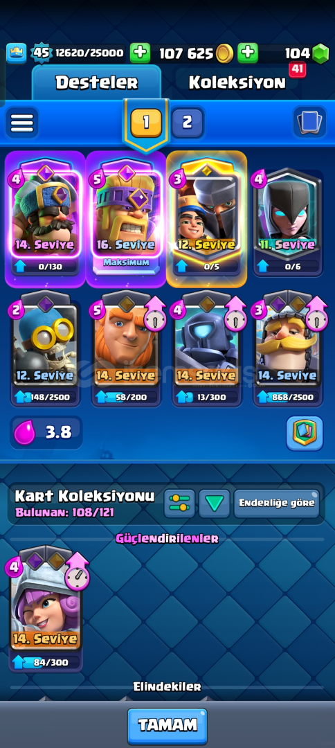 +100k altın 104 taş , 121 kartın 108'i hesapta mevcuttur
