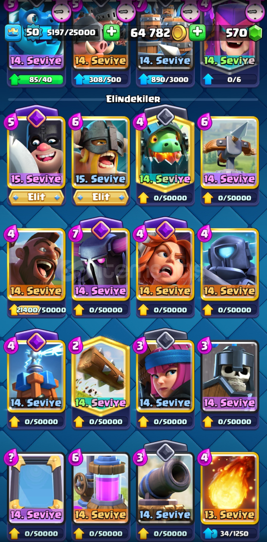 14250 kupa 2 elit kart, 13 adet 14 seviye kart