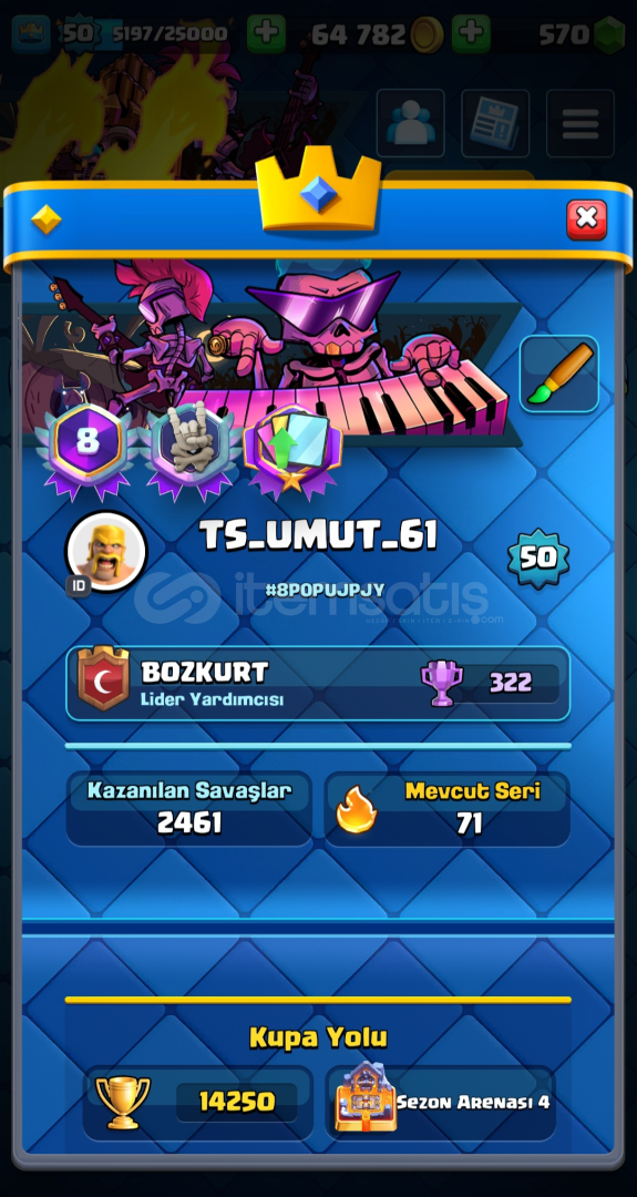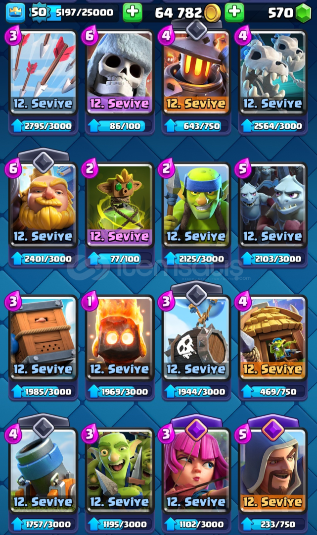 Hesap 14250 kupa, 15000 kupa da gördü. Hesap 8 yıllık değerli Hesap. Hesap satıldıktan sonra hemen g-mail i satın alan kişiye verilir dolandırma (vs.) olmaz %100 güvenli. Hesap ta 2 tane elit kart 13 tane 14 level kart 9 evrim li kart bulunuyor 3 evrim parçası bulunmaktadır.
