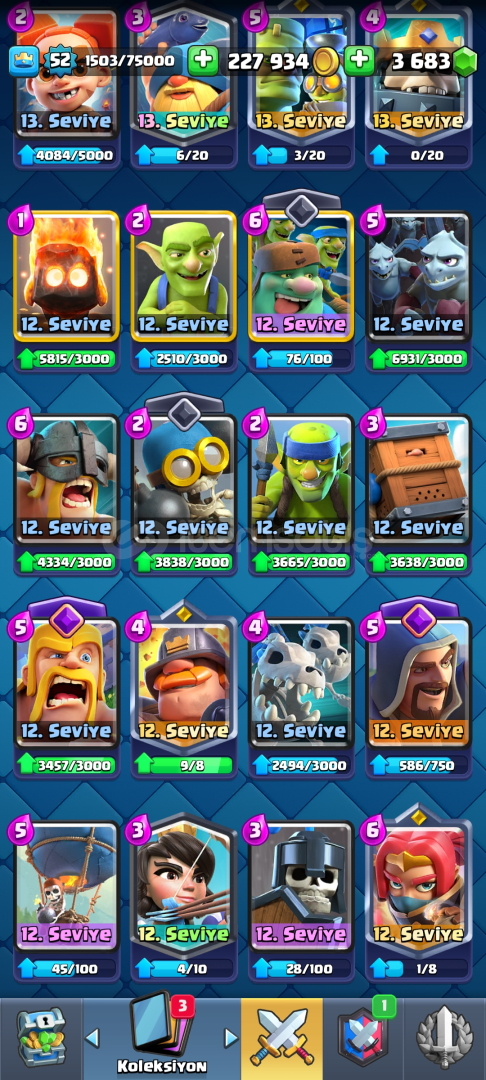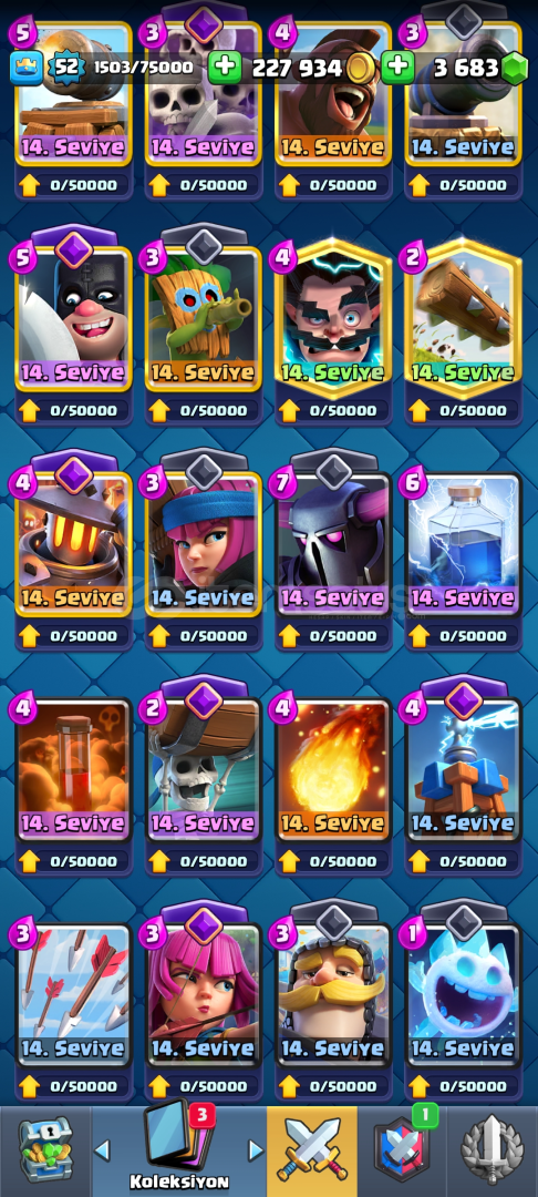Hesabın tüm detayları fotoğraflarda mevcuttur.Aktarım konusunda hiçbir sıkıntı yaşamadan gönül rahatlığıyla alabilirsiniz.Yeni olan evrimlerden fırıncı,iskelet ordusu,iskelet fıçısı pass royale ile alınmıştır.