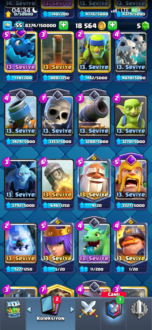 55 seviye hesap. 11 tane evrim var. Fotoğraflardakş gibidir. Hesap ile ilgili soru sorabilirsiniz.