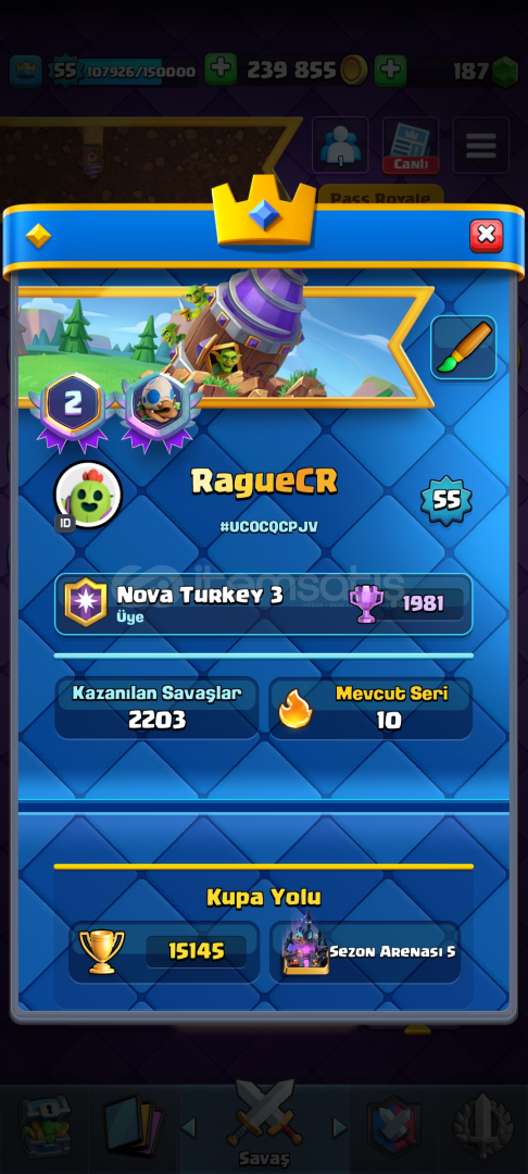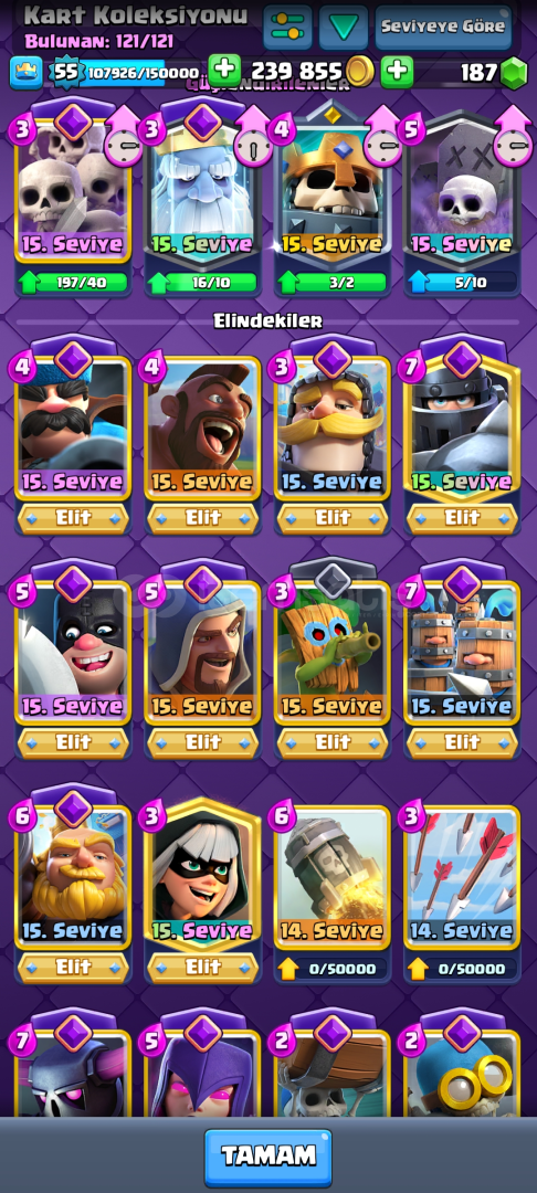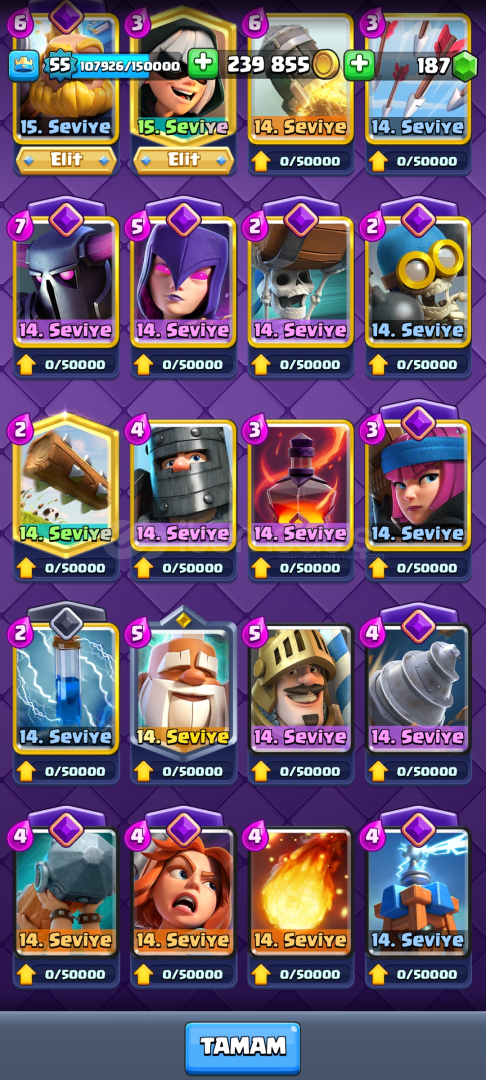 15000 Kupa CR Hesap 29 Evrim 10 Elit
