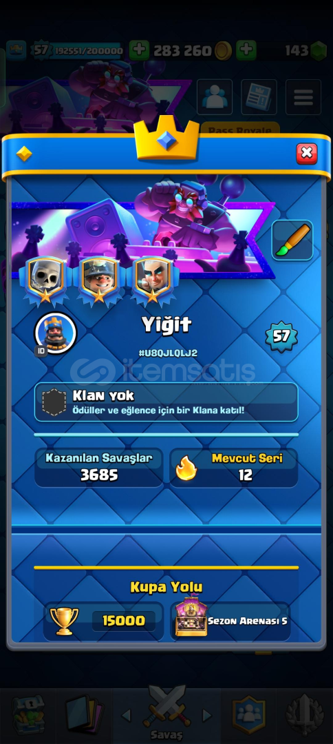 15000 KUPA OLMUŞ OLUP HESAP ŞUAN 10000 KUPADIR3 KERE PASS AÇILDI17 ELİT KART17 EVRİM58 SEVİYE97 EMOJİHESAP EPOSTASI SİZİN E POSTANIZLA DEĞİŞTİRELECTİRSUPERCELL ID HESAP KORUMASI KAPALI
