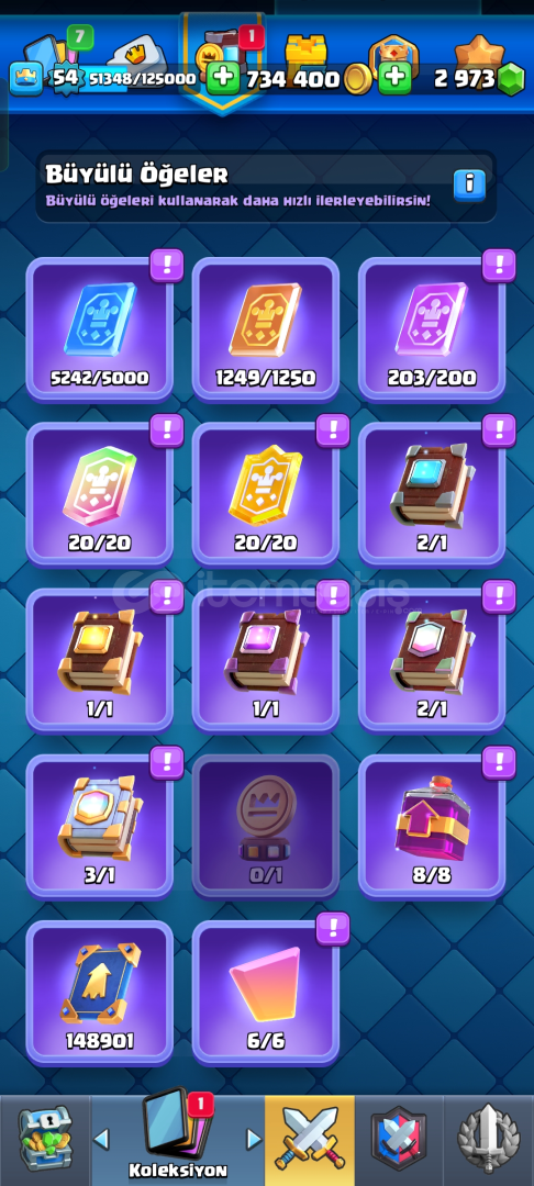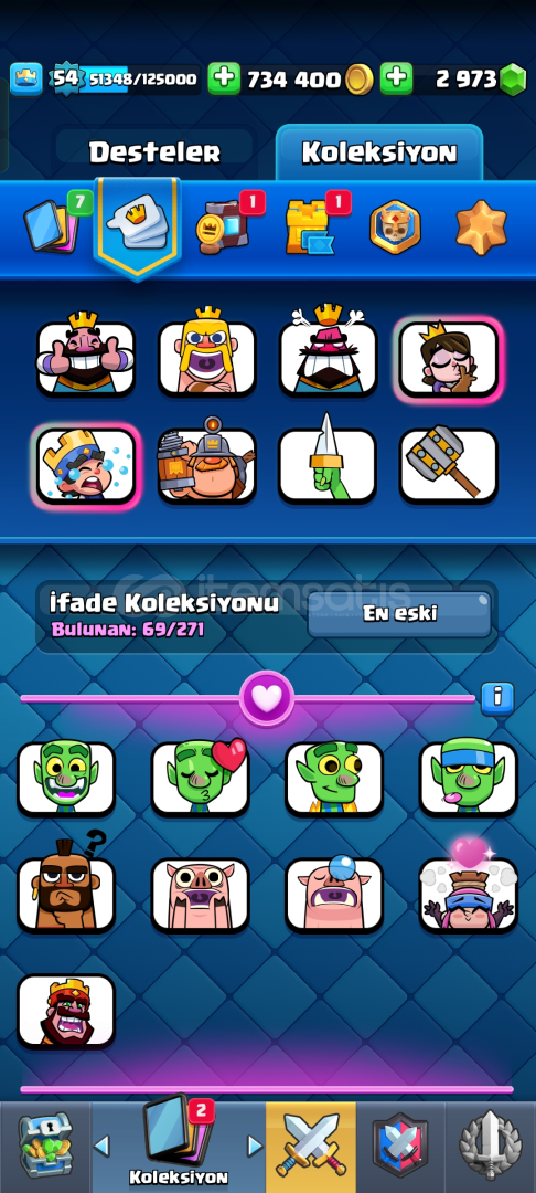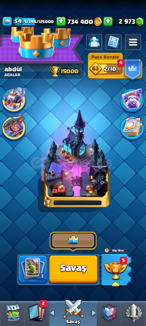 Tüm kartlar açık 15k kupa 54 lvl hesap ful+ful hesap daha ucuzu yok