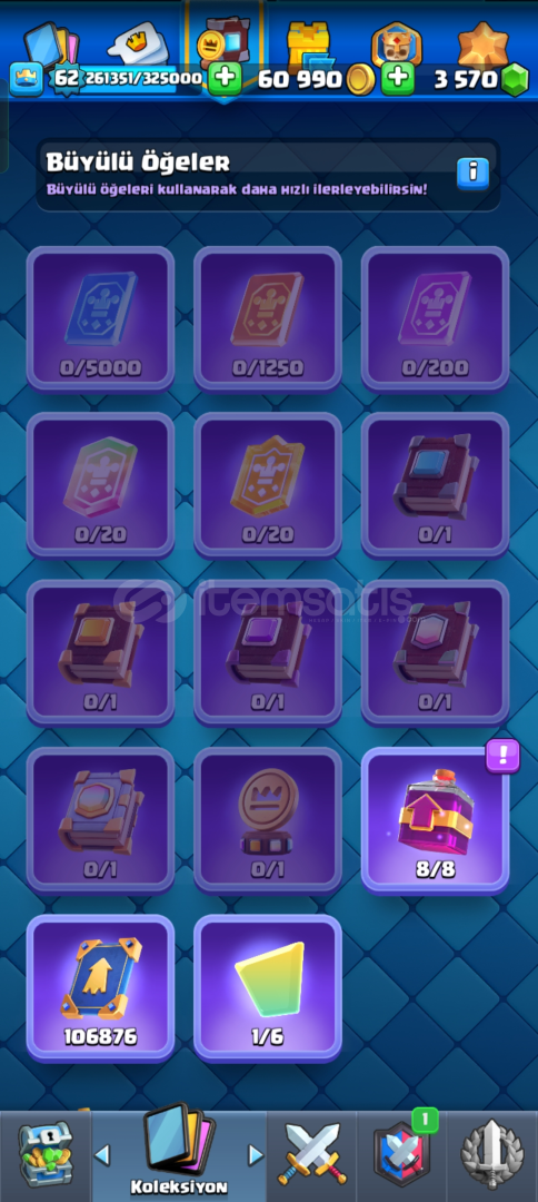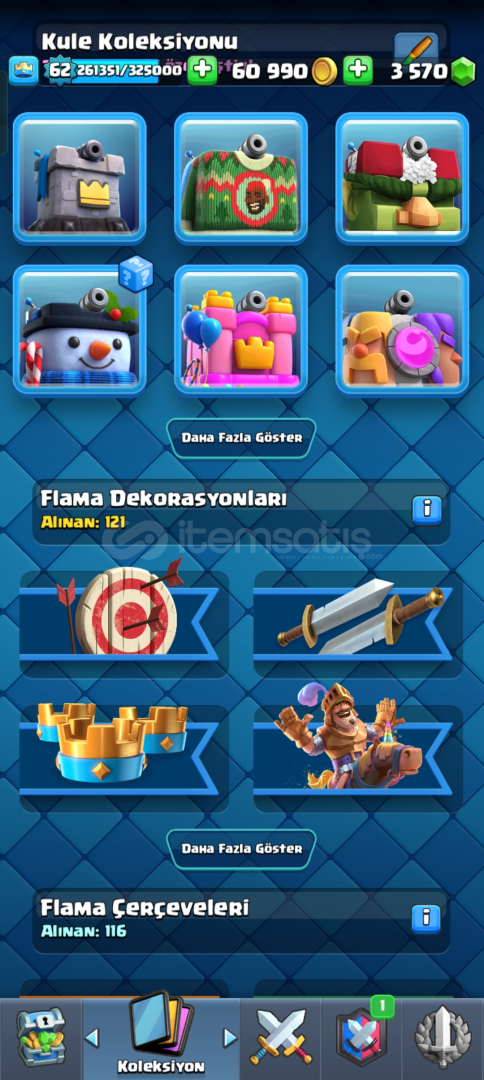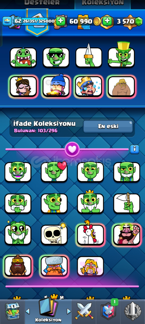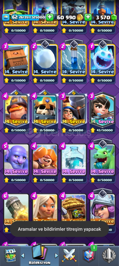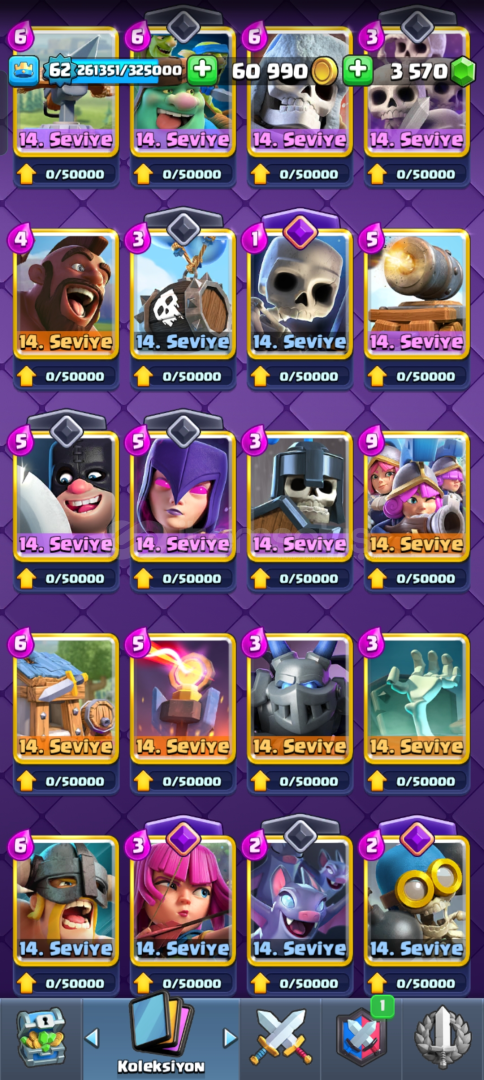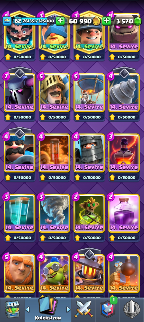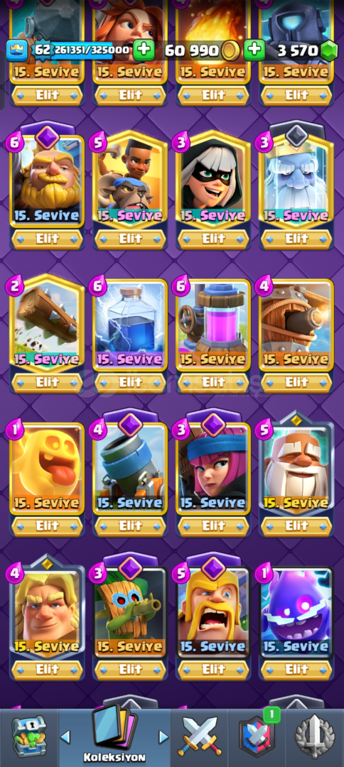 15k kupa nihai rahatlıkla gördüğüm 110 tane 14+ kart 34 tane elit 2 elit kule birliği 50 kişilik aktif klan lideri 100000 elit kart ayırdım alan kişi istediğini yükseltsin diye3570 elmas 16 evrim diğer evrimlerden parçalar 103 ifade en toksiklerinden birsürü flama vs isteyene bu ay nihaiye kasarım