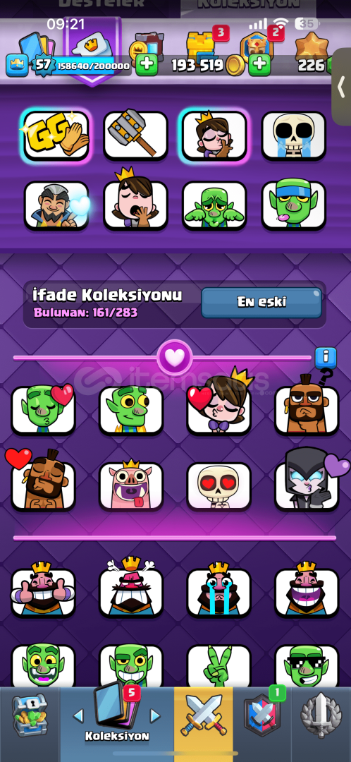 HESAP AKTİF 15K KUPADIR VE 57 SEVİYEDİR161 EMOJİ MEVCUTTUR NERDEYSE TAŞLA ALINAN BÜTÜN TOKSİK EMOJİLER VAR16 ELİT KART42 14 SV16 ADET EVRİM12 KULE GÖRÜNÜMÜ 2si PASS ROYALEDEN GELENAKTİF JOKER KARTLAR FAZLASIYLA FULLDÜRMAİL DEĞİŞİM AKTİFTİR NUMARA BAĞLI DEĞİLDETAYLI BİLGİ İÇİN MESAJ ATABİLİRSİNİZHESAP KODU #20VG2CLQ9