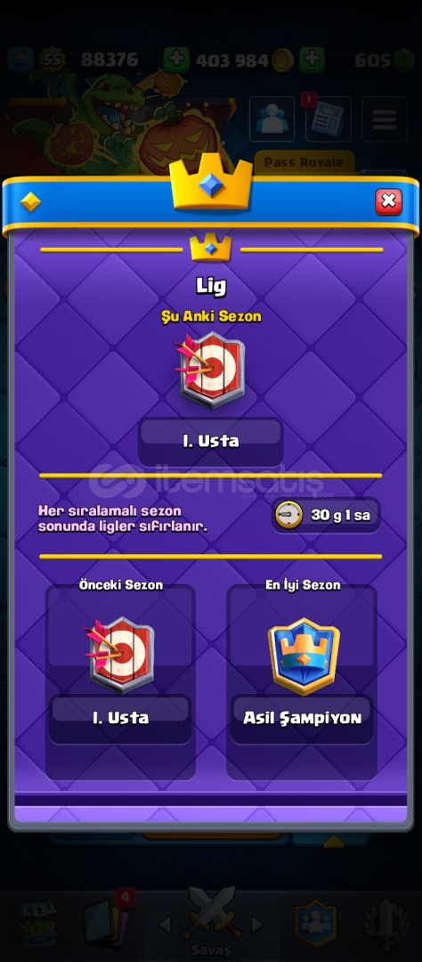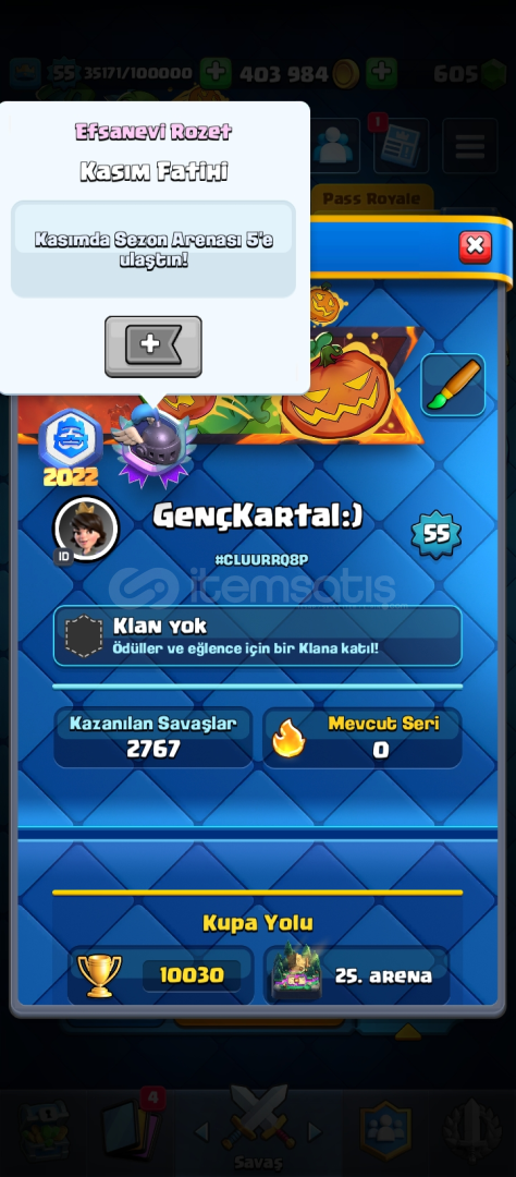 Kasım ayinda 15k kupa rozeti alınmışşuanda 10k8 evrimli(valkur, goblin kafesi, duvar yikici, bombaci, fiskeci,tesla,avci)klas...