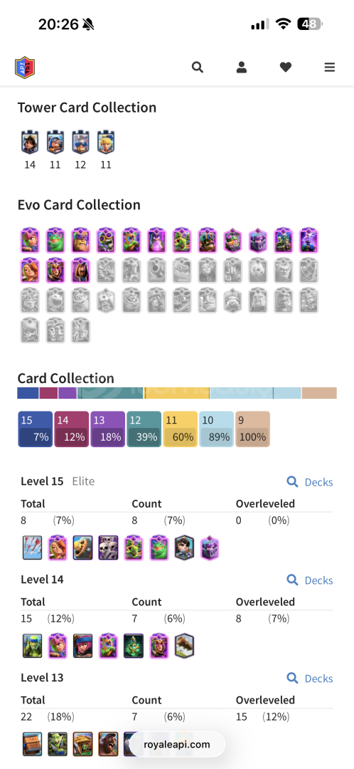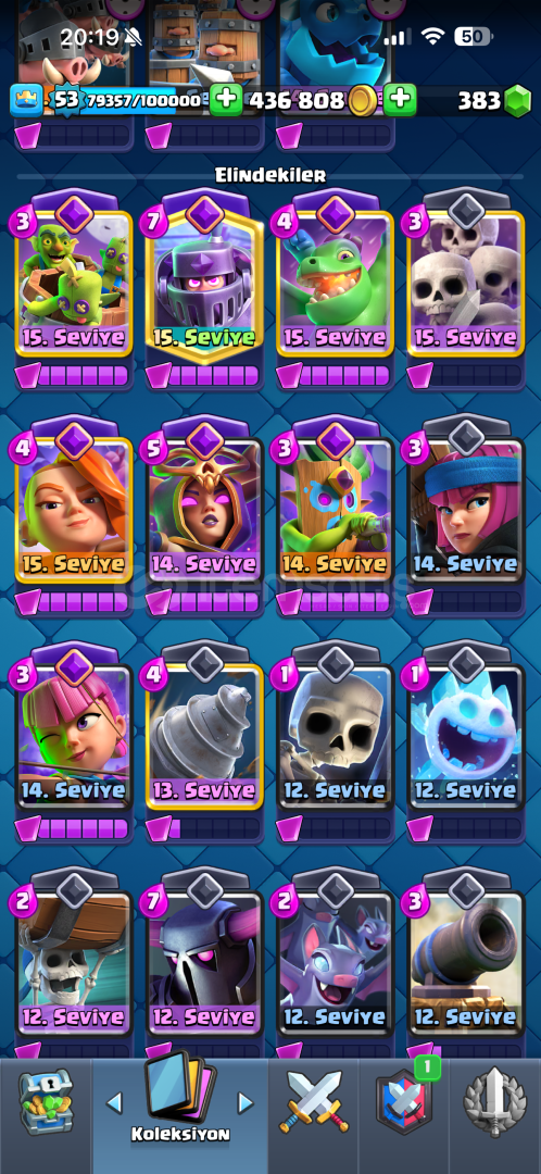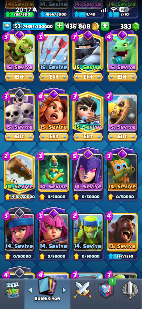 15k kupa 8 elite card 15 evrimli kartlı hesap tüm kartlar açık çok güzel mainlik hesap 5 pass royele açılmış