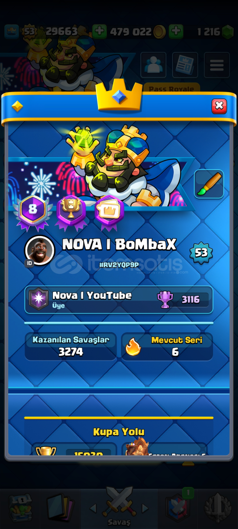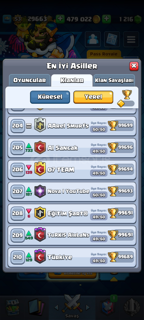 Oyunu bıraktığım için satıyorum en değerli içinde 8 yıldır oynuyor rozeti var 2 ay içinde 9 yıldır oynuyo olucak zaten 9 yıl oldu çıkalı 2 ye 2 Ligi'nde 1lik rozeti var 500k altın 1.3k elmas var +90 flama +90 rozet ful toxic goblin emojileri aklınıza gelebilecek en toxic emojiler klan nova Türkiyenin orjinal YouTube klani yerel ilk 100-200 arası takılıyor oyunu bır...