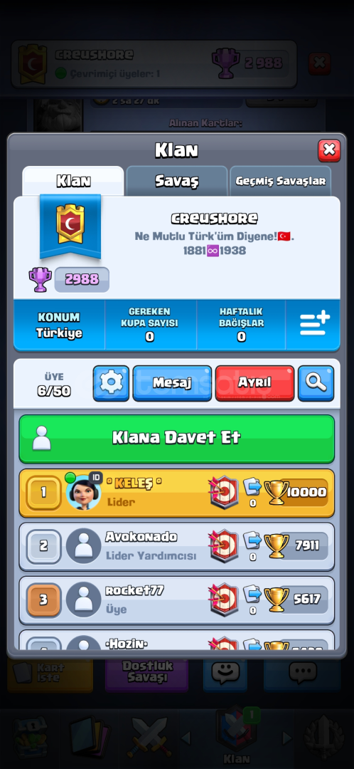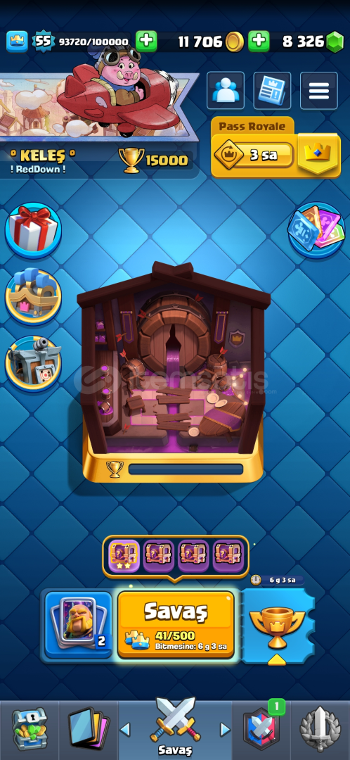 Hesap 15000 kupa 4 evrim kd,hayalet , muhafızlar,domuzcuklarAşamalı açık Pass royale açık Eski sezon nadir emojiler 36 nadir kule skini2988 mor kupa olan klanla beraber verilecektir sormak istediginiz bişey varsa yazabilirsiniz