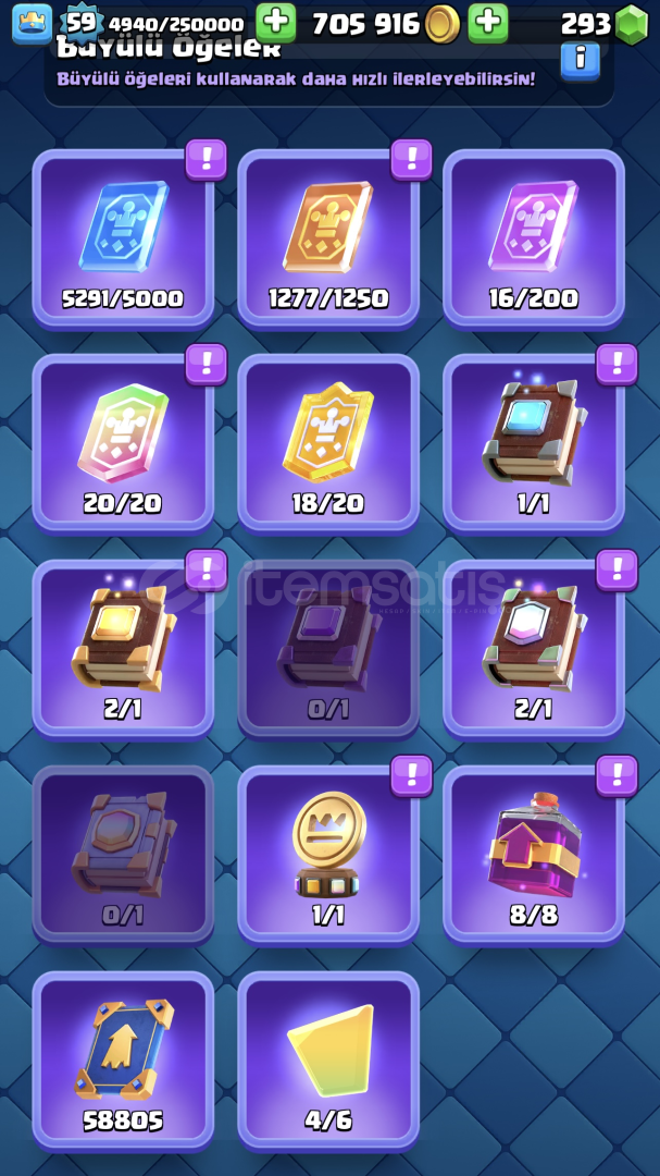 Hesap ilanda incelediğiniz gibidir. Ana hesabım artık oynamadığım için elden çıkarıyorum. Ufakta olsa Pazarlık payı vardır.Hesap içeriği:Hesap Lvl: 59hesap 8 yıllık eski hesaptır.16 Sv. kart: 8 adet15 Sv. Kart: 25 adet14 seviye kart: 60(Geri kalan tüm kartlar 13-12 seviye bandındadır envanterdeki jetonlarla istenilen seviyeye anında yükseltilebilir.)16 adet evrimevrim par&cced...