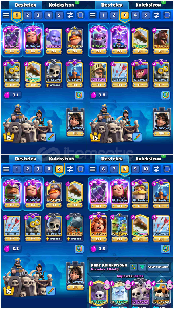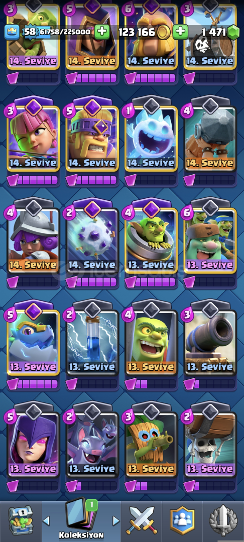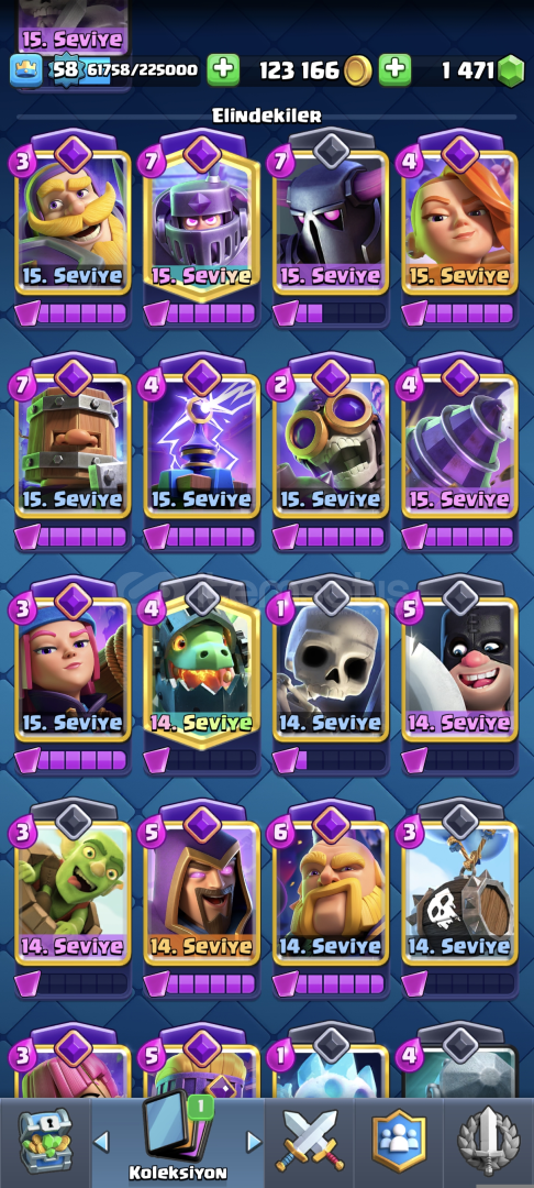 Öncelikle merhaba arkadaşlar hesap 58 seviye olup meta destleri maxtır tertemiz gmaile bağlanmış olup sorunsuz bir şekilde teslim edilecektir ✓ 100 Emoji bulunmaktadır ✓ 58 Seviyedir✓ 10.800 Kupadır ✓ 9 Tane kule görünümü mevcuttur✓ Şovalye, Mega Şovalye, Valkür, Muhafızlar, Tesla, Bombacı, Köstebek, Fişekçi, Büyücü, Kraliyet Devi, Okç...