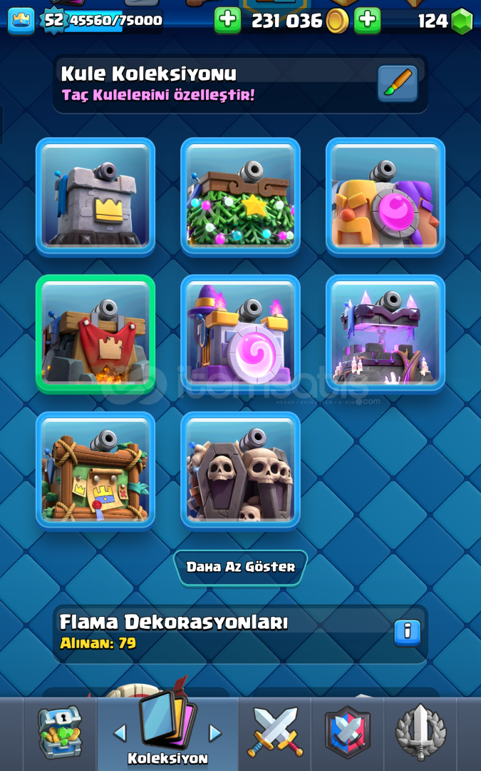 🏰 Hesapta çeşitli kozmetikler, kule görünümleri ve bazı özel emojiler bulunuyor.