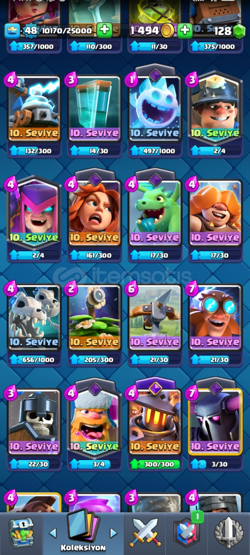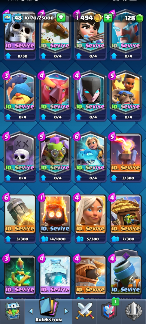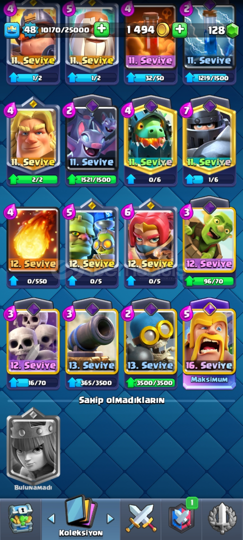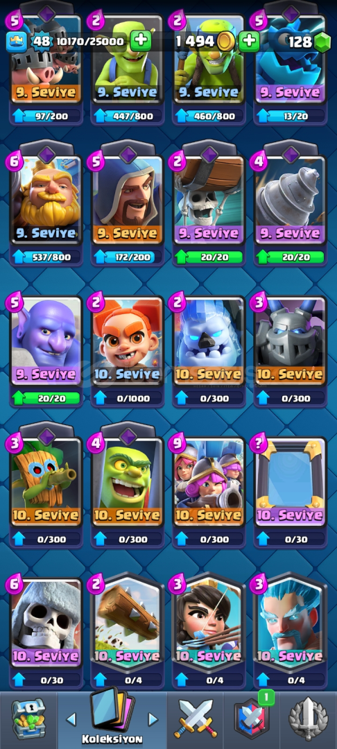 HESAPTAKİ çoğu detay fotolarda var 3evo var 16lv barbar 14lv bombacı falan var kart seviyeleride fotoda emojilerde baya toxic ilgilenen yazsın pazarlık düşünürüm ana kule 14 prensesde 14 hesap seviyesi 48